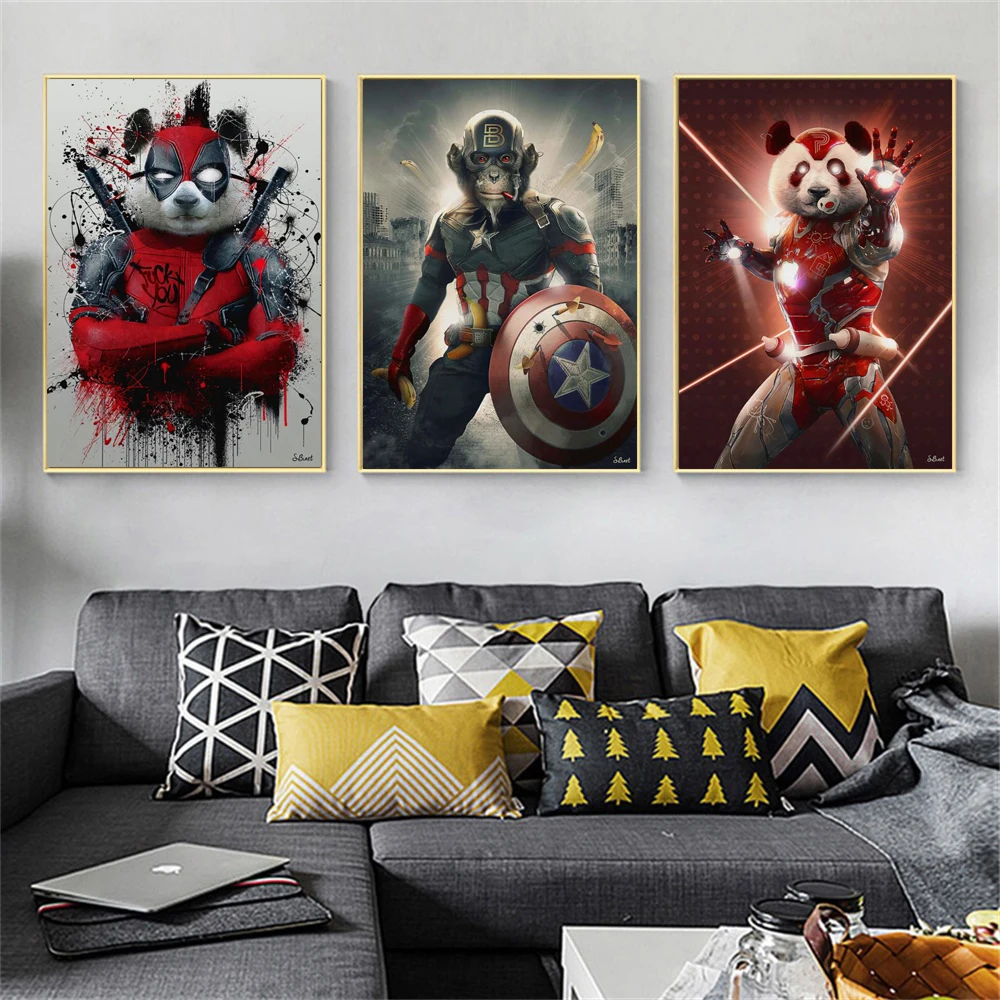 Забавные Животные героев граффити настенные картины художественные плакаты и принты с принтом обезьяна, панда, фотографии для детской комнаты настенный Декор