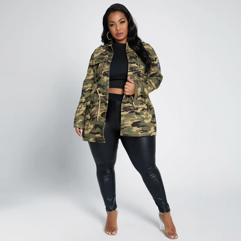 Камуфляжные куртки для женщин, большие размеры 5xl, с длинным рукавом, на завязках, камуфляжная Военная верхняя одежда, пальто с заклепками