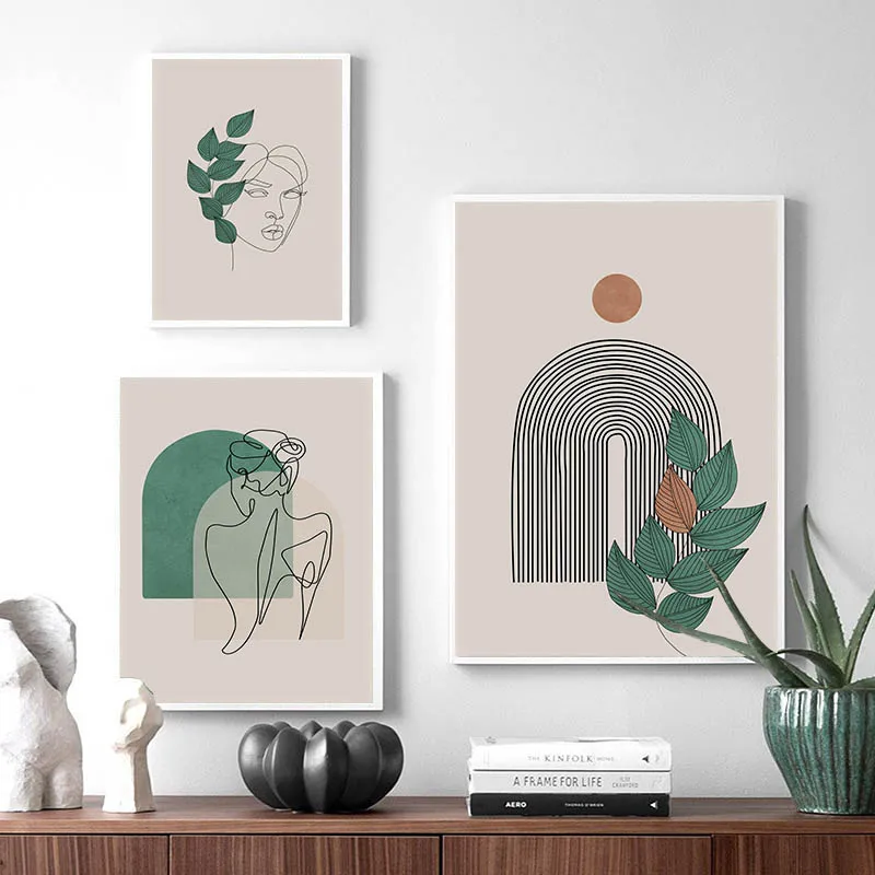 Настенный абстрактный плакат с изображением линий, цветов, листьев,...