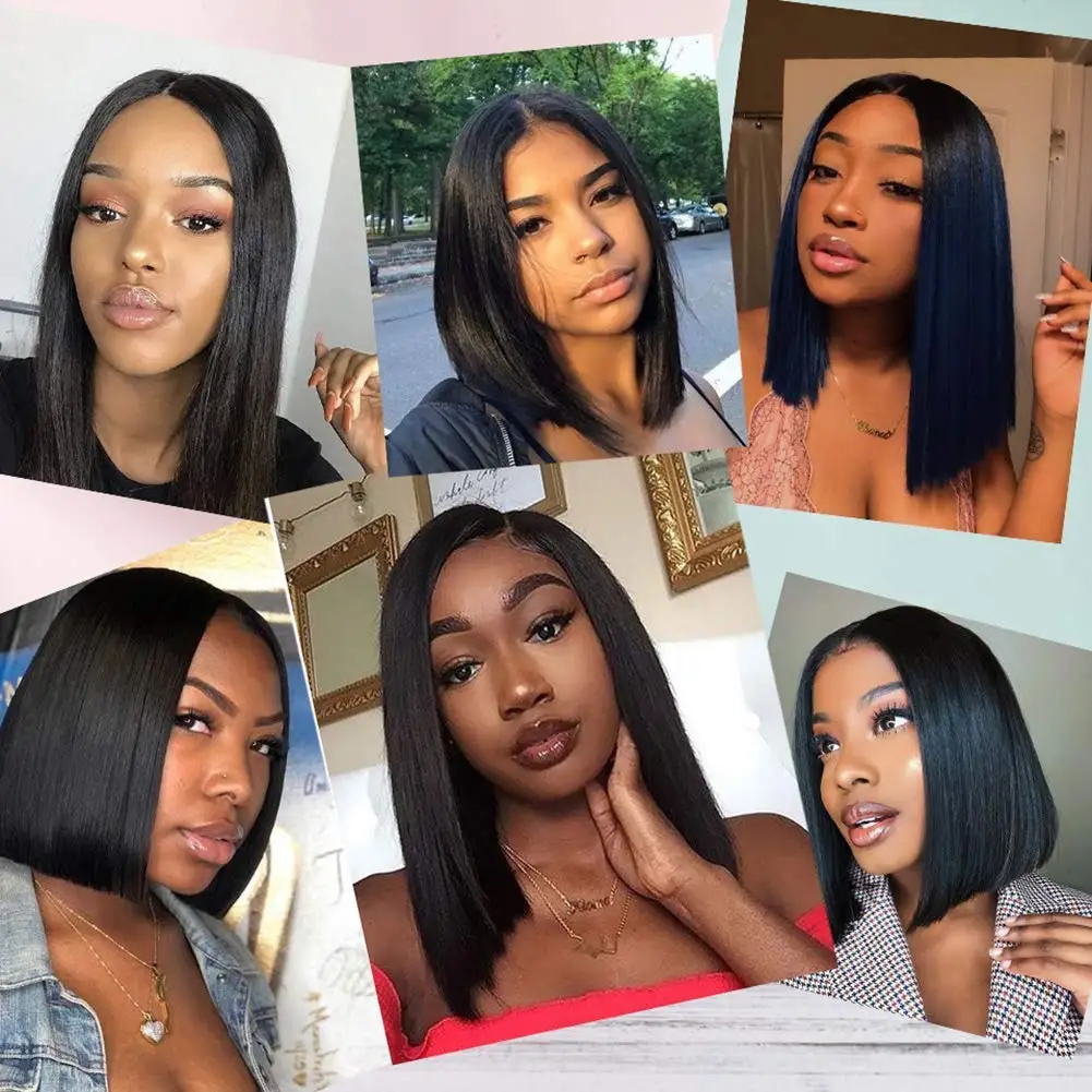 Короткие парики боб, прямые фронтальные парики из человеческих волос на сетке для женщин, с детскими волосами, парик на сетке 13x6, бесклеевой парик на сетке, плотность 180