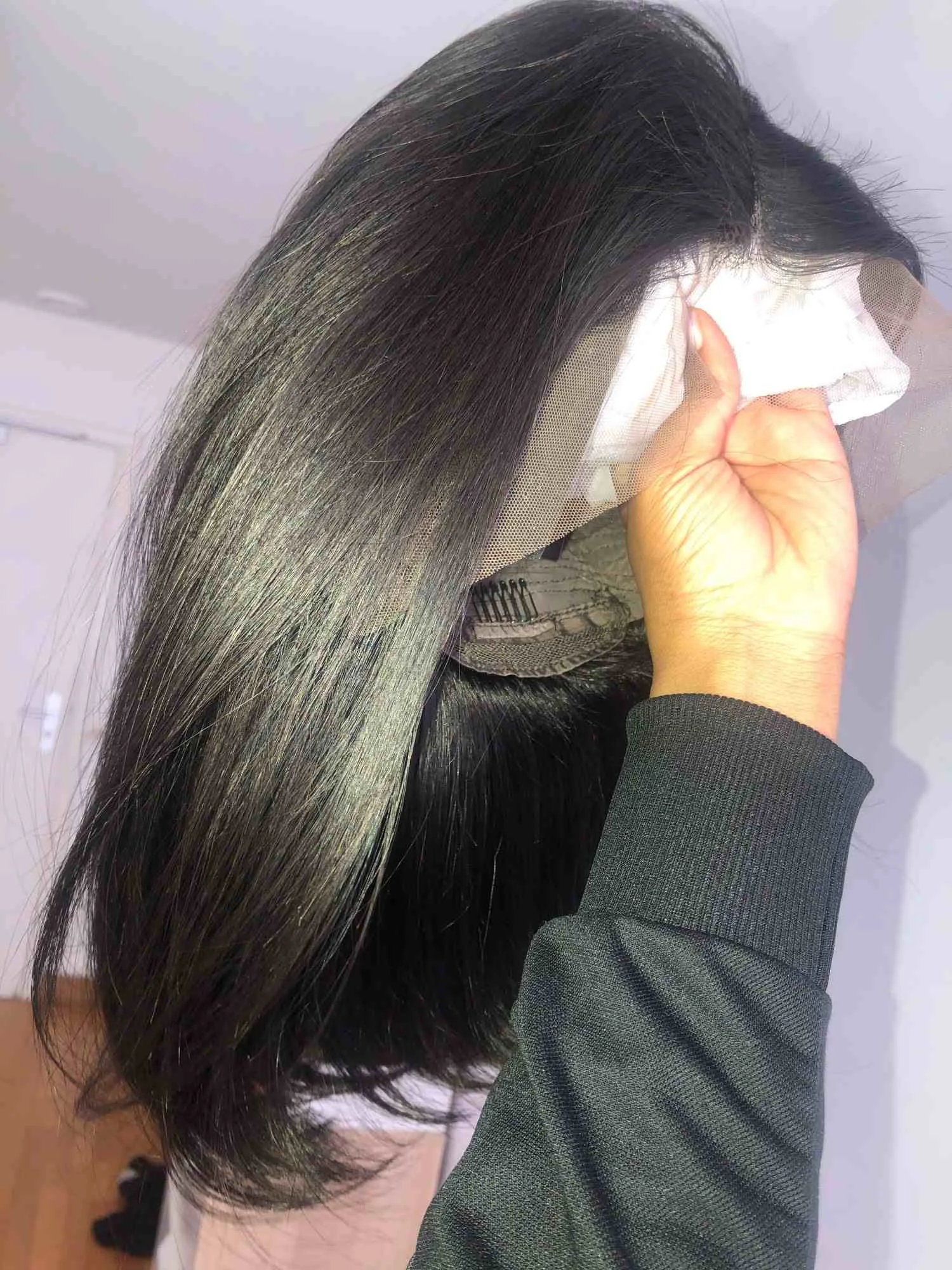 Волосы фантастические! Когда я получил его, я помыл его и волосы? Был очень гладким и блестящим! Честно говоря, лучшие волосы! Я все еще новичок, когда дело доходит до парика, поэтому в первый раз я очень доволен! Большое спасибо за предоставление хорошего сервиса и сохранение хорошего качества волос!