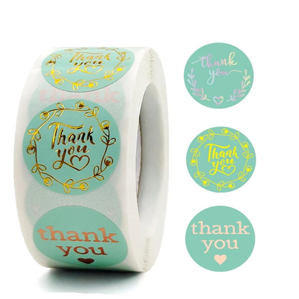 100-500 шт Спасибо наклейки с принтом в виде сердец и этикетки для печати красочная наклейка из золотистой фольги для Свадебная вечеринка подарок Декор стикер ручной работы