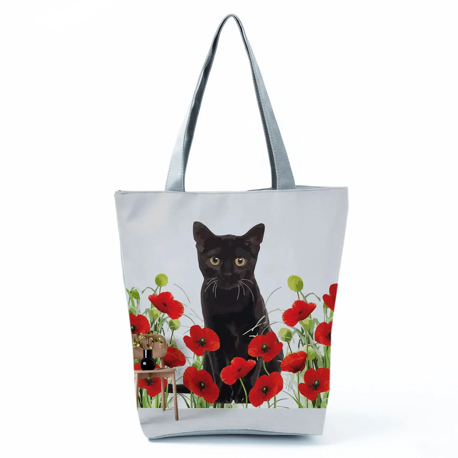 Черная кошка, косметичка с двусторонним принтом, красная Цветочная женская косметичка, крутая модная сумка для хранения, женская сумка для туалетных принадлежностей, портативная