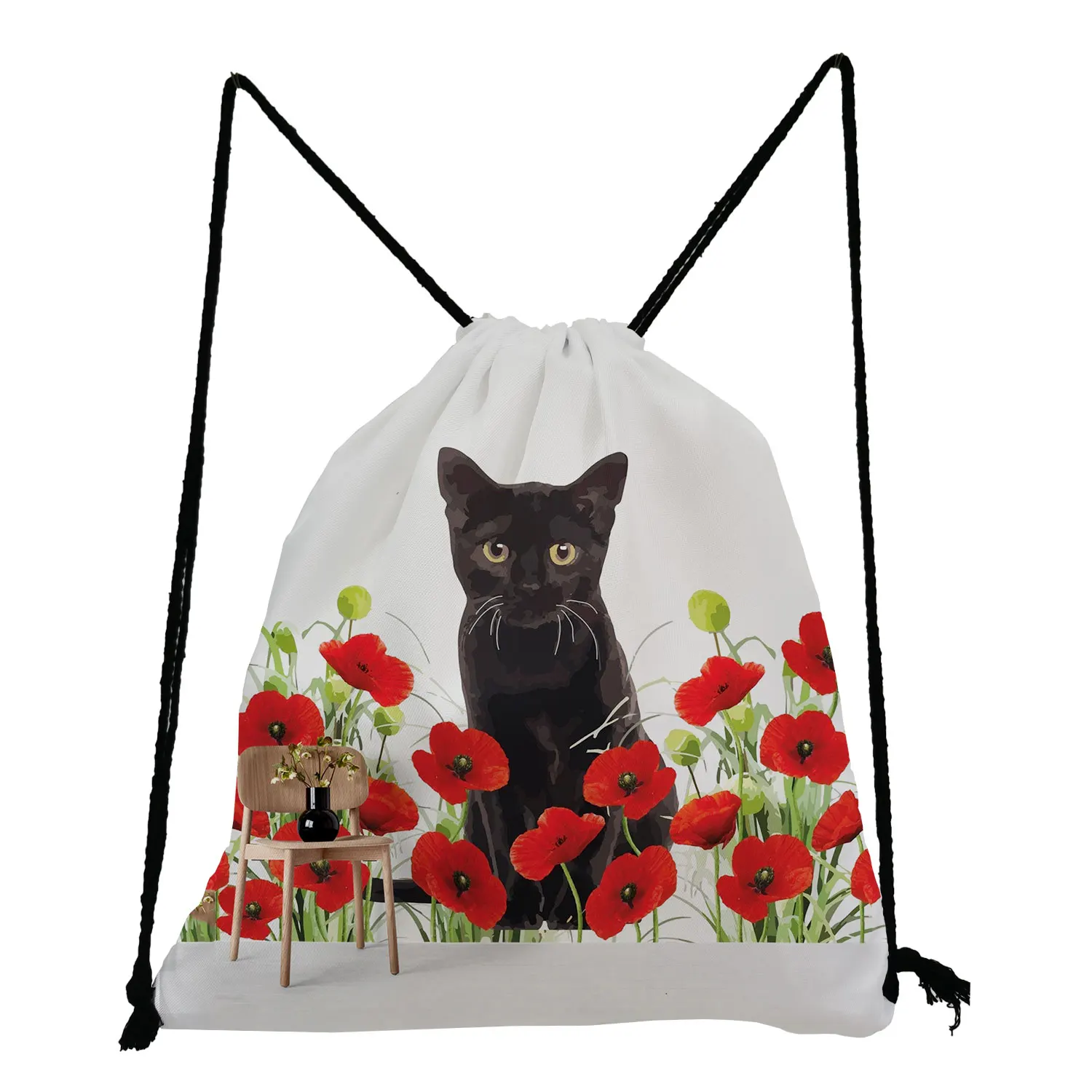 Двухсторонняя сумочка для косметики Black Cat, женская сумка для косметики с красным цветочным принтом, крутые модные сумки для хранения, женская сумка для туалетных принадлежностей, портативная