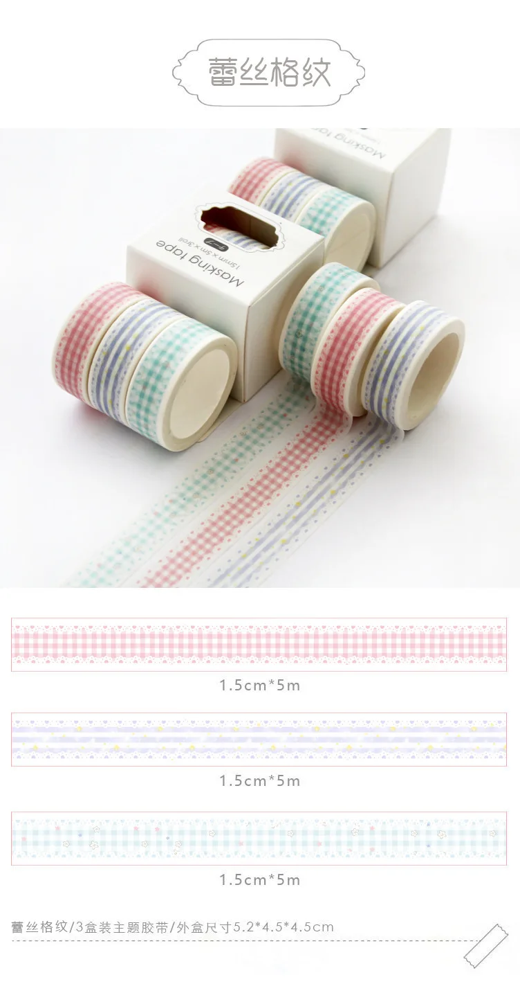 Kawaii васи лента декоративная маскирующая лента канцелярские ленты для девочек дневник японский 5 м клей 3 шт милый набор декоративного скотча Васи