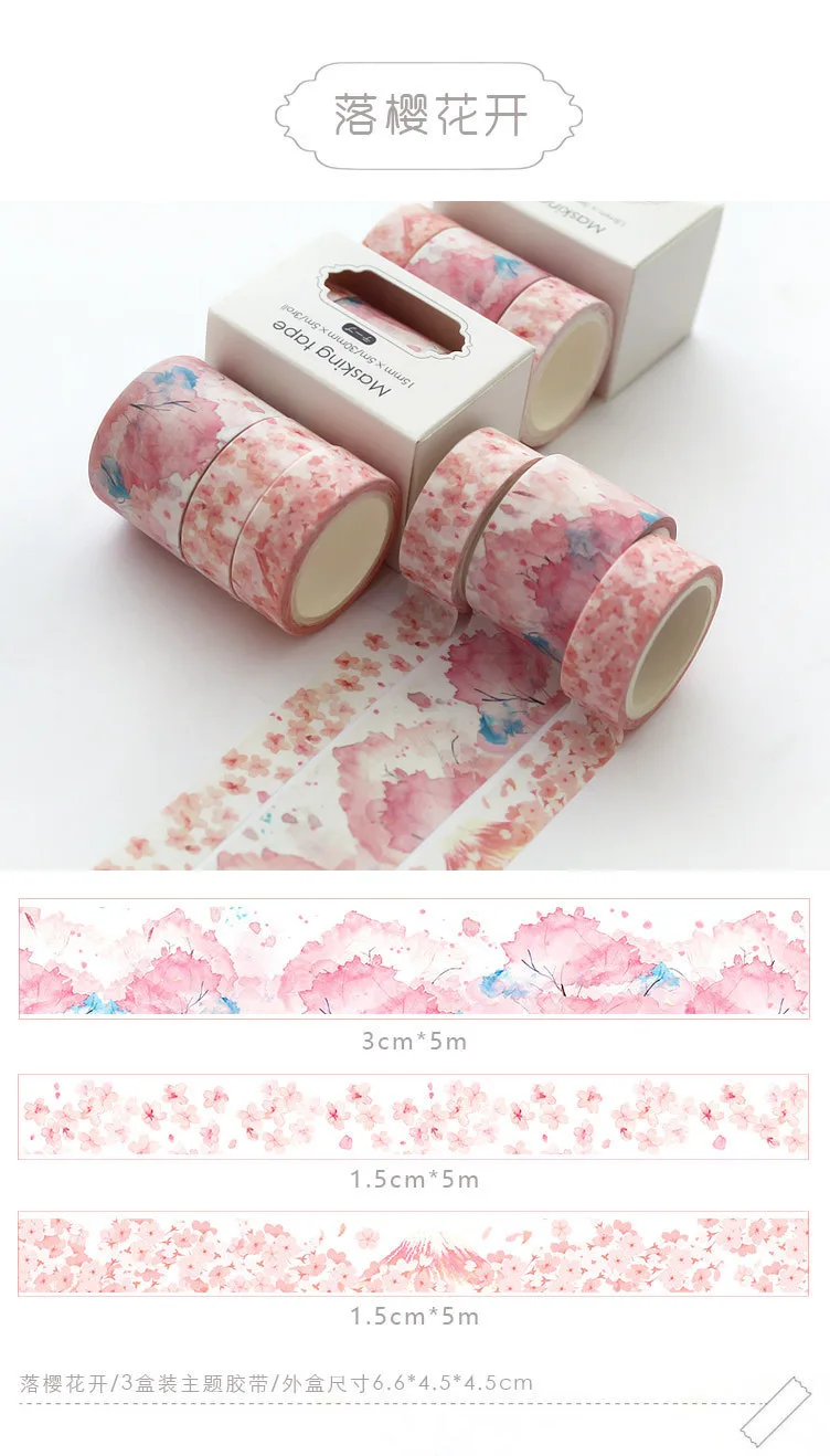 3 шт.упак. набор декоративного скотча Васи с розовыми цветками вишн...
