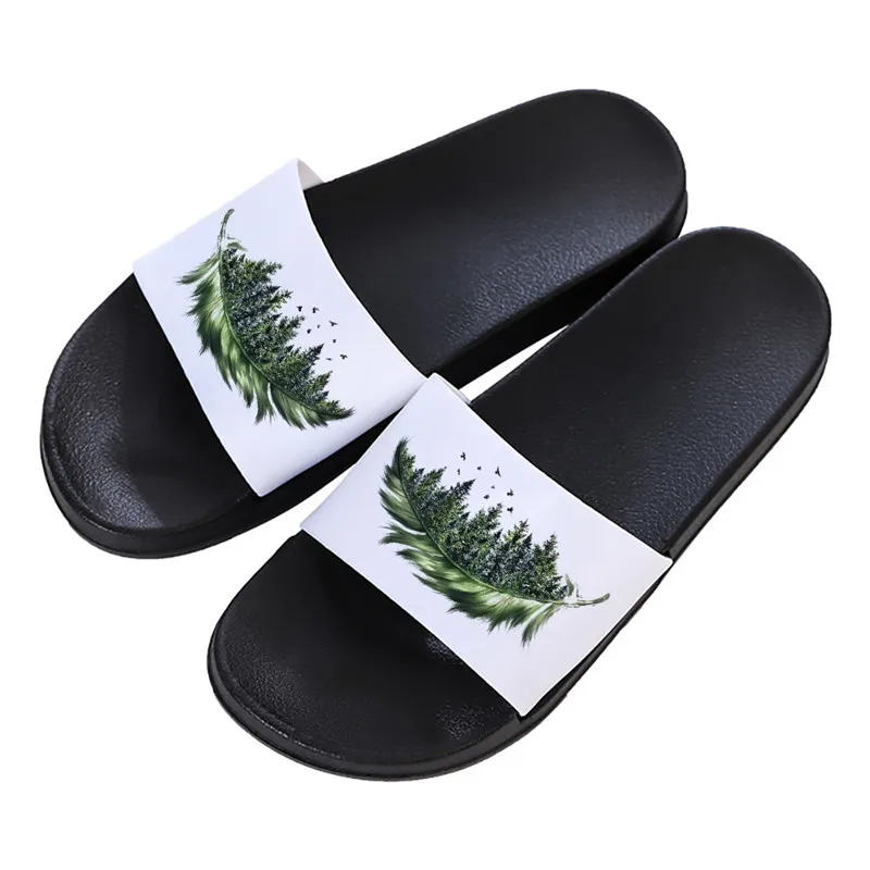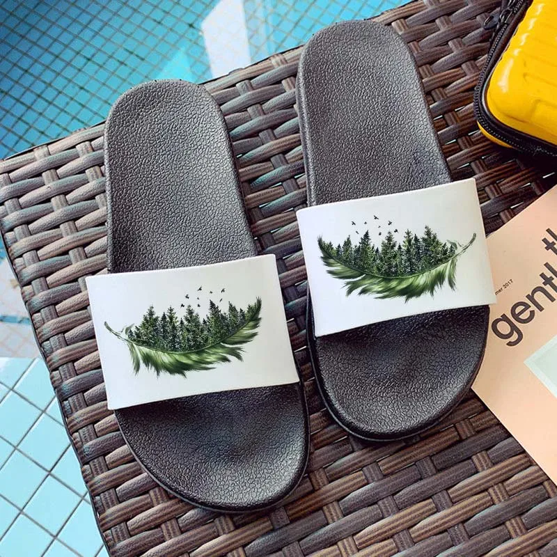 Женские шлепанцы с принтом листьев, эстетические сандалии-слайды с перьями, модная домашняя обувь, лето 2021