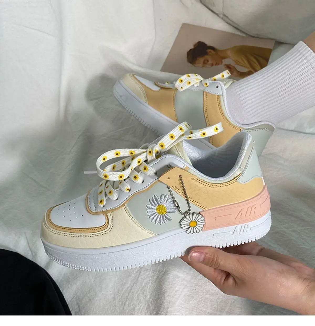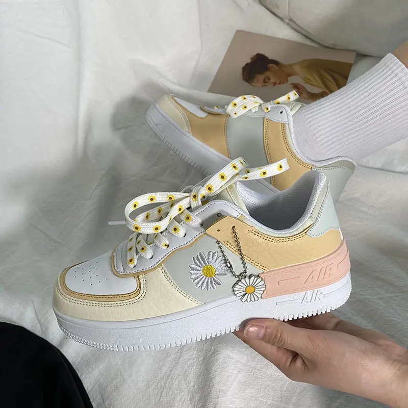 Кроссовки женские на платформе, Вулканизированная подошва, цветочный принт, плоская подошва, повседневная обувь для скейтборда, весна-лето