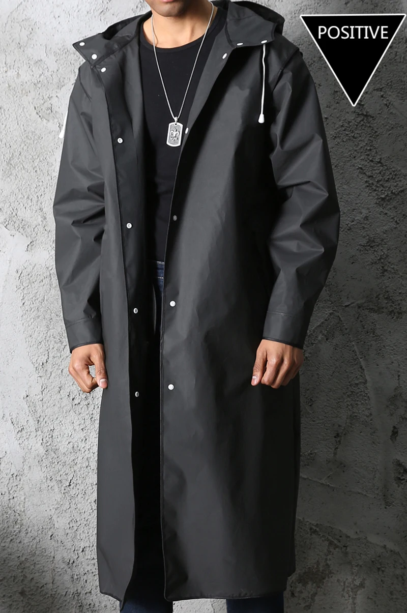 Водонепроницаемый Длинный плащ для взрослых, модный утепленный дождевик с капюшоном для активного отдыха, походов, путешествий, рыбалки, скалолазания, черный