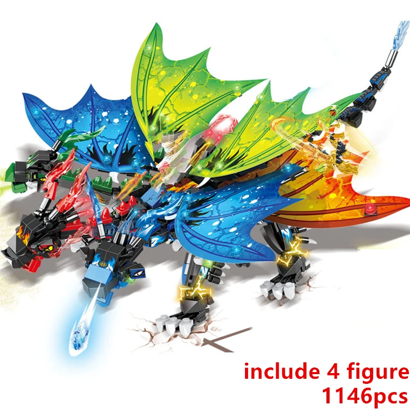 Конструктор рыцарь дракона ниндзя 4 в 1, фигурки сделай сам, модель...