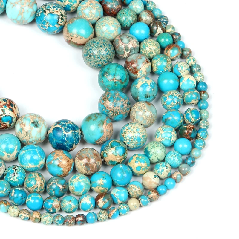 Синие императорские бусины из натурального камня, бирюзовые морские осадки, круглые разделители, бусины россыпью для фотографий, DIY 4681012 мм
