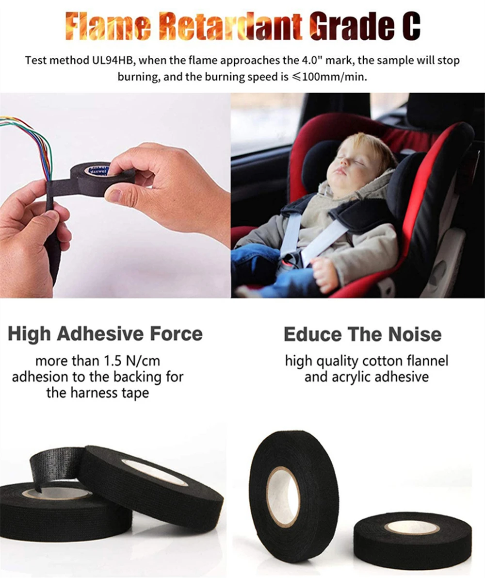Термостойкая огнестойкая лента 15 м, электрическая корплатистая клейкая тканевая лента для автомобильного кабеля, жгут проводов, защита ткацкого станка