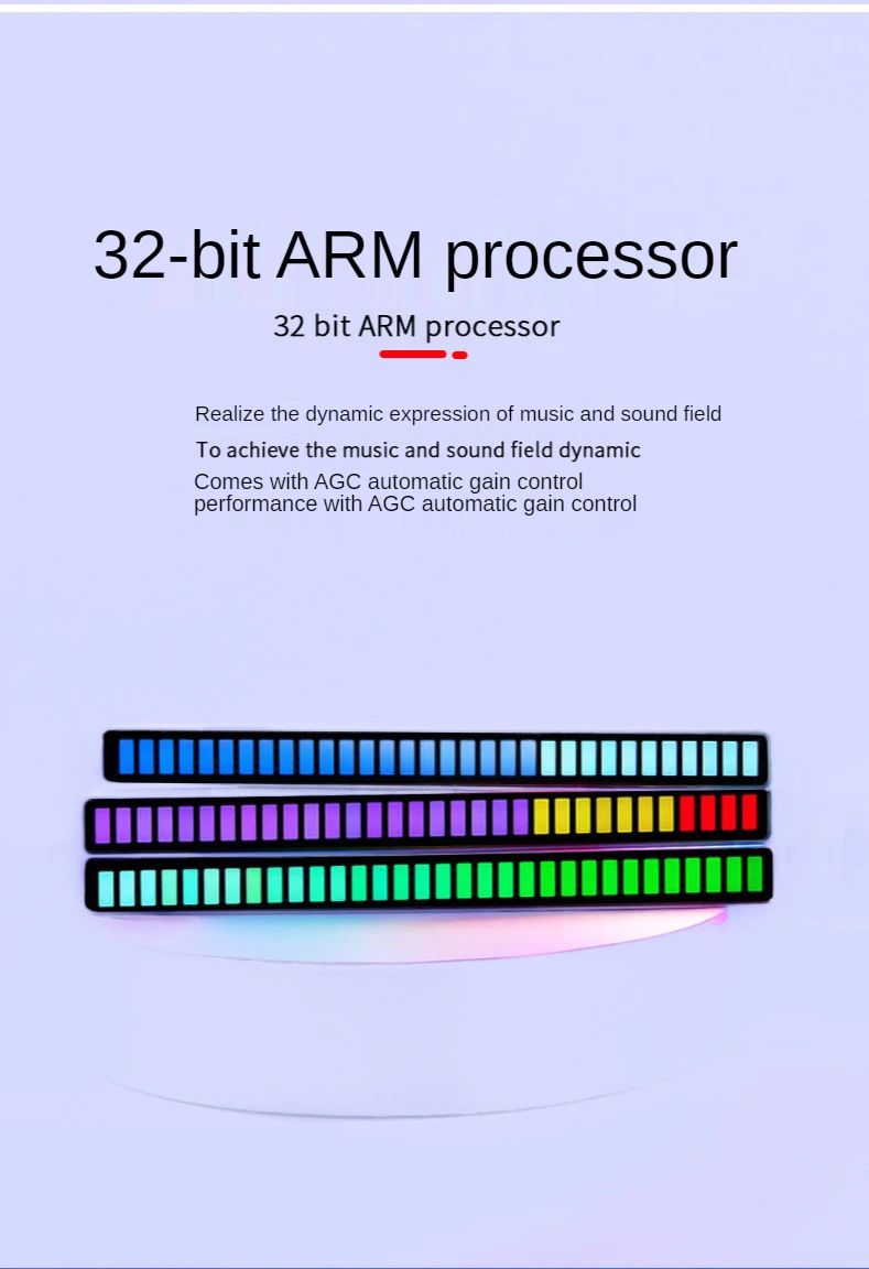 Материал: АБС + электронные компонентыРазмер: как показано на картинкеВстроенный высокочувствительный микрофон (Голосовое управление)32/40 красочные лампы бусины8 режимов отображения4 уровня яркости регулируется5-уровневая регулировкой скорости18 цветовых режимов регулируетсяПоставляется с AGC автоматическим контролем усиленияЭксклюзивный интеллектуальный алгоритм деnoising, может использоваться в шумной средеПараметры продукта:Входное напряжение:> 5 в постоянного тока 1AВходной интерфейс: USBЧастотная характеристика: 50-16 кГцСтиль 1-40LED, с приложением (32-бит ARM)Стиль 2-32LED, с приложением (32-бит ARM)Стиль 3-32LED (32-бит ARM)Стиль 4-32LED USB (32-бит ARM)Стиль 5-32LED USB, с помощью приложения (32-бит ARM)Стиль 6-32LED USB (16-бит рука)Советы: 16-битное продукты имеют без противовеса, основной состав материала представляет собой плохое, таким образом, не рекомендуется. Многие недорогие продукты на рынке продаются с 16 битами, делая вид, что они 32 бита, пожалуйста, внимательно сравните перед покупкой.Описание ключа: Проверьте в конце описания товараУпаковочный листСветильник-1 шт.1 кабель для передачи данных1 основание1 х Двусторонняя лента1 х Руководство
