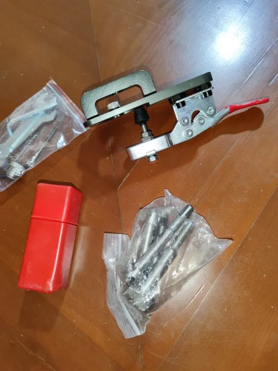Удобный кондуктор, прижим не совсем параллельный, но легко исправляется подкладыванием шайб.
