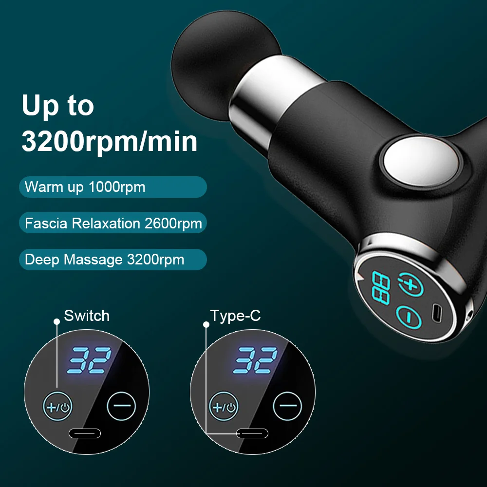 Массажный пистолет с ЖК-дисплеем, 32 скорости