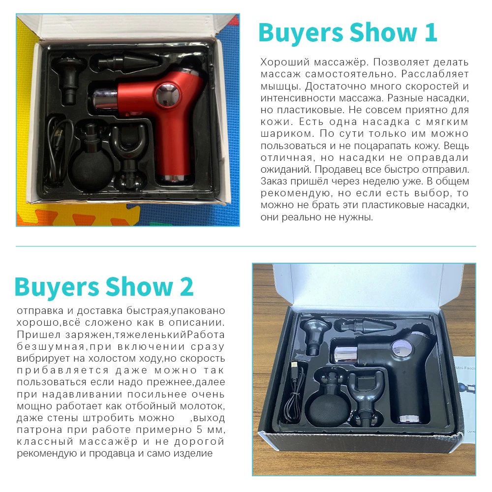Хороший массажёр. Позволяет делать массаж самостоятельно. Расслабляет мышцы. Достаточно много скоростей и интенсивности массажа. Разные насадки, но пластиковые. Не совсем приятно для кожи. Есть одна насадка с мягким шариком. По сути только им можно пользоваться и не поцарапать кожу. Вещь отличная, но насадки не оправдали ожиданий. Продавец все быстро отправил. Заказ пришёл через неделю уже. В общем рекомендую, но если есть выбор, то можно не брать эти пластиковые насадки, они реально не нужны.