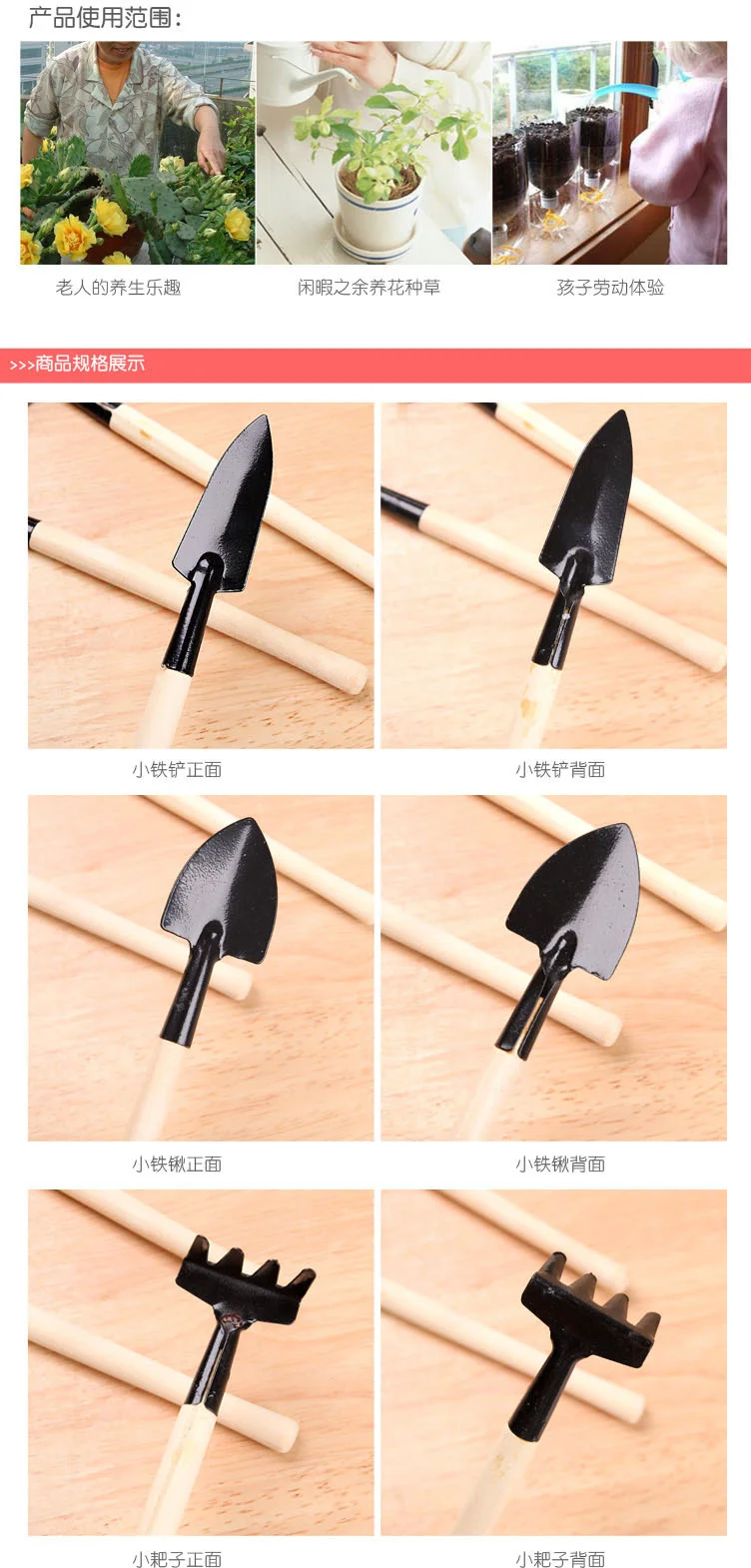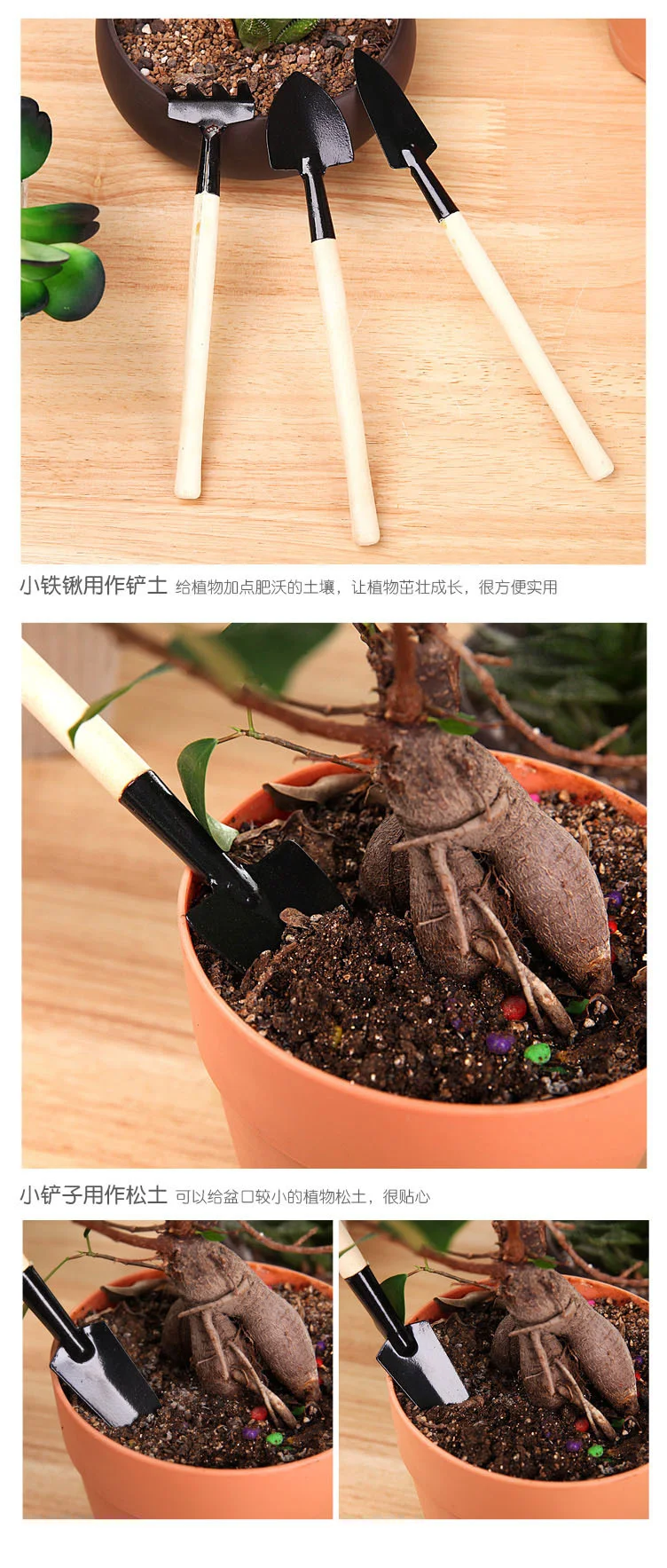 3 шткомплект мини-лопата сгребать горшок для растений, завод инструменты деревянная ручка, горшок для растений, пол садовые инструменты