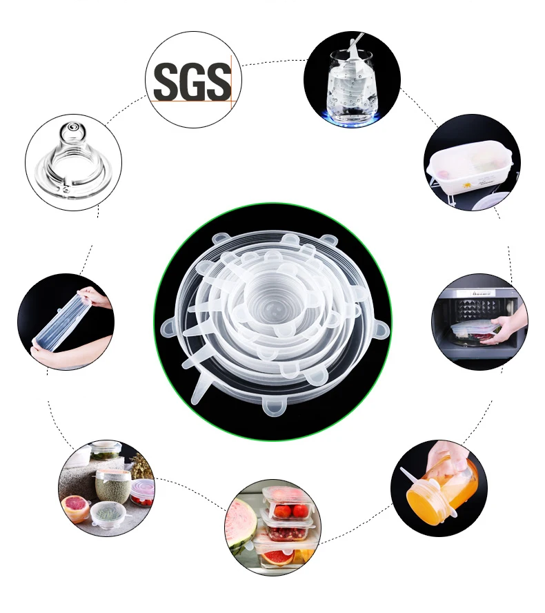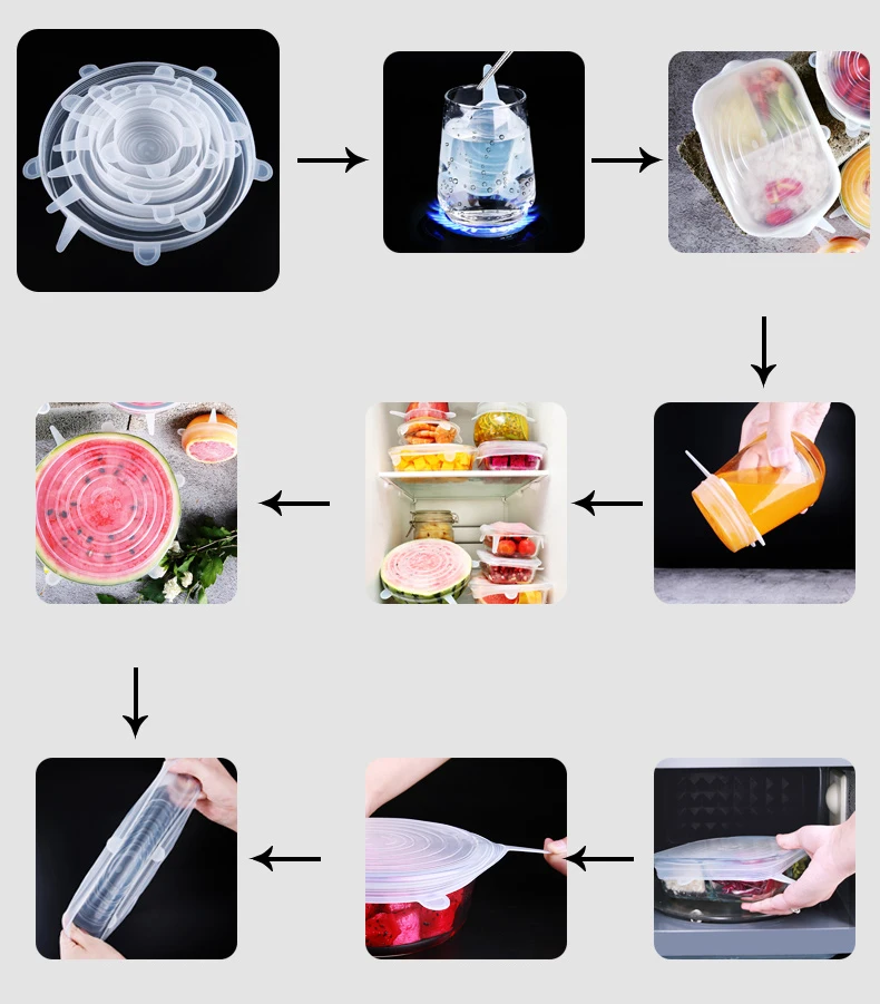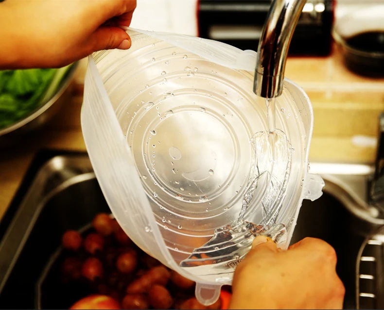 Набор из 6 спецификаций для ежедневного использованияСохраняющая свежесть крышка обладает высокими характеристиками расширения и сжатия и хорошей эластичностью. Широко используется в чашках, мисках, тазиках и блюдцах различных размеров.