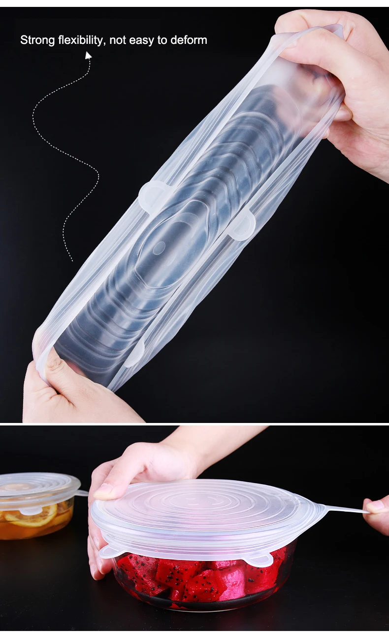 Набор из 6 спецификаций, подходящий для посуды и посуды различных размеровСвежий чехол обладает высокой гибкостью и эластичностью, может растягиваться до вдвое больше оригинального продукта, имеет множество применений