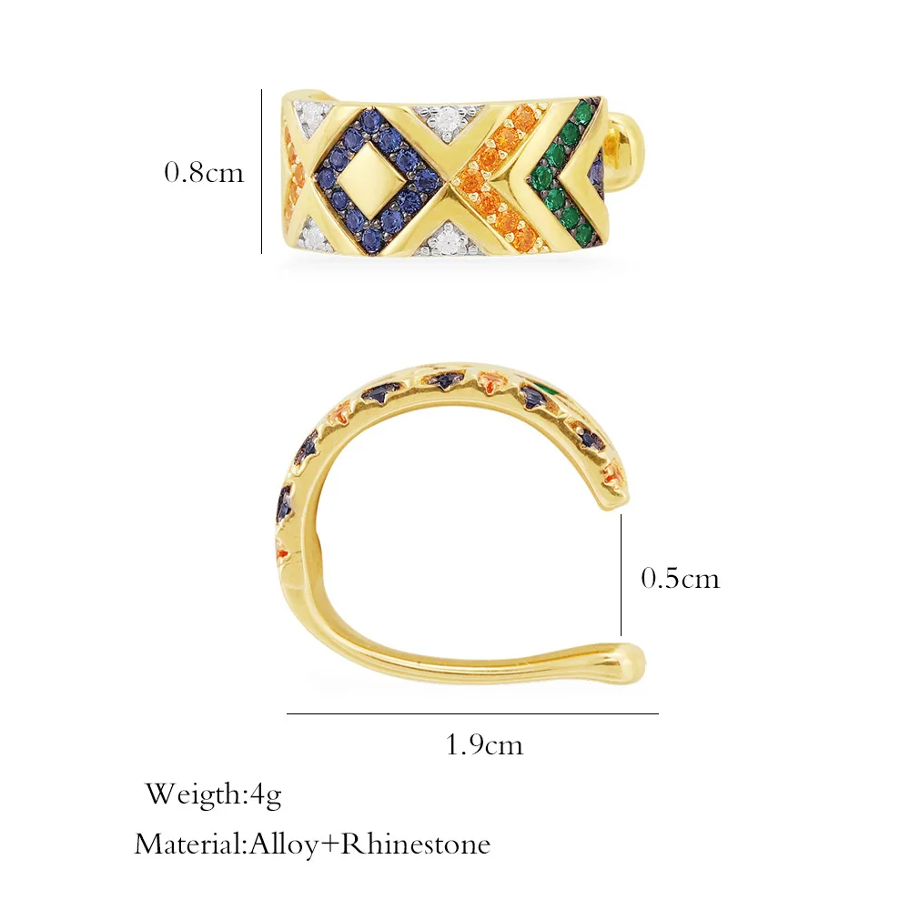 Винтажные Разноцветные полосатые клипсы в стиле бохо, широкие каффы для ушей без пирсинга, каффы для ушей с кристаллами, свадебные Клипсы (1 шт.)