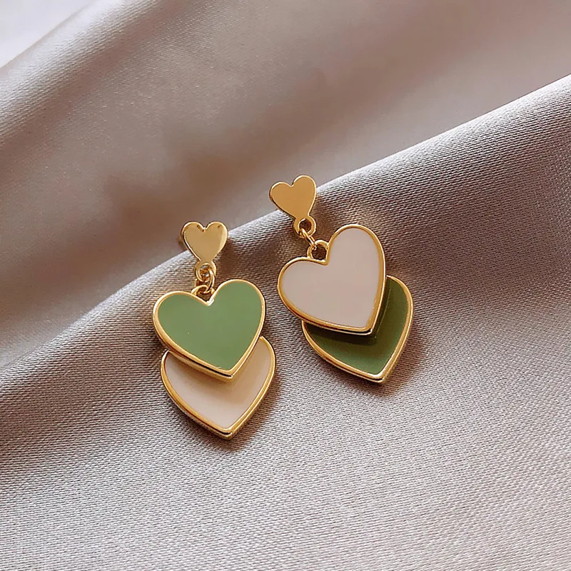 Популярные модные милые серьги в форме сердца, Модная бижутерия, белые, зеленые асимметричные серьги-капли в форме сердца для женщин, корейские Эффектные серьги
