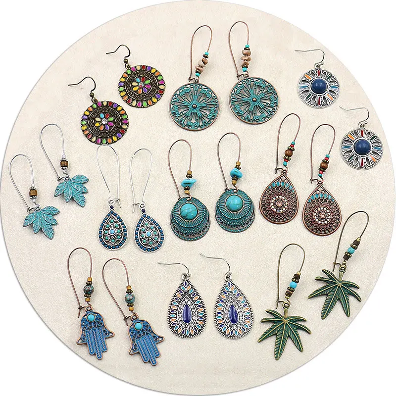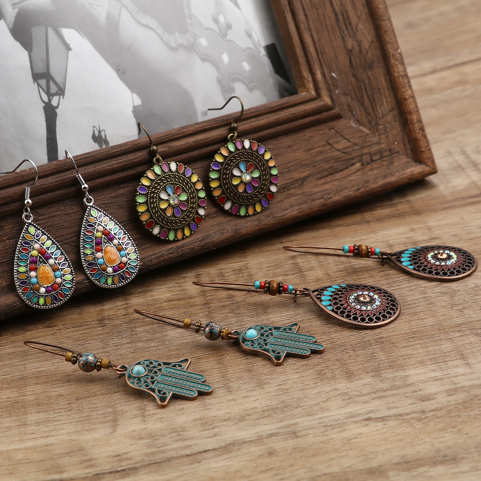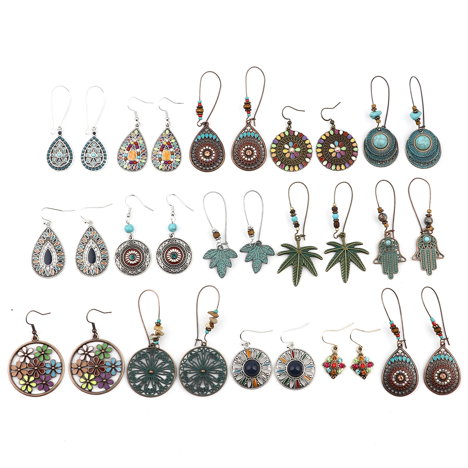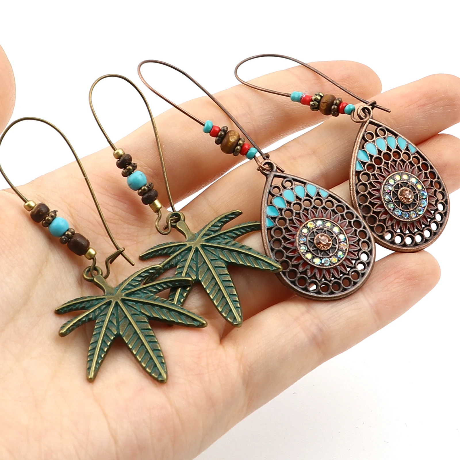 1 пара в богемном стиле, в виде капель в винтажном стиле, состоящий из сережек и круглого капли воды античная медь бронза аксессуары для женщин серьги ювелирные украшения в подарок
