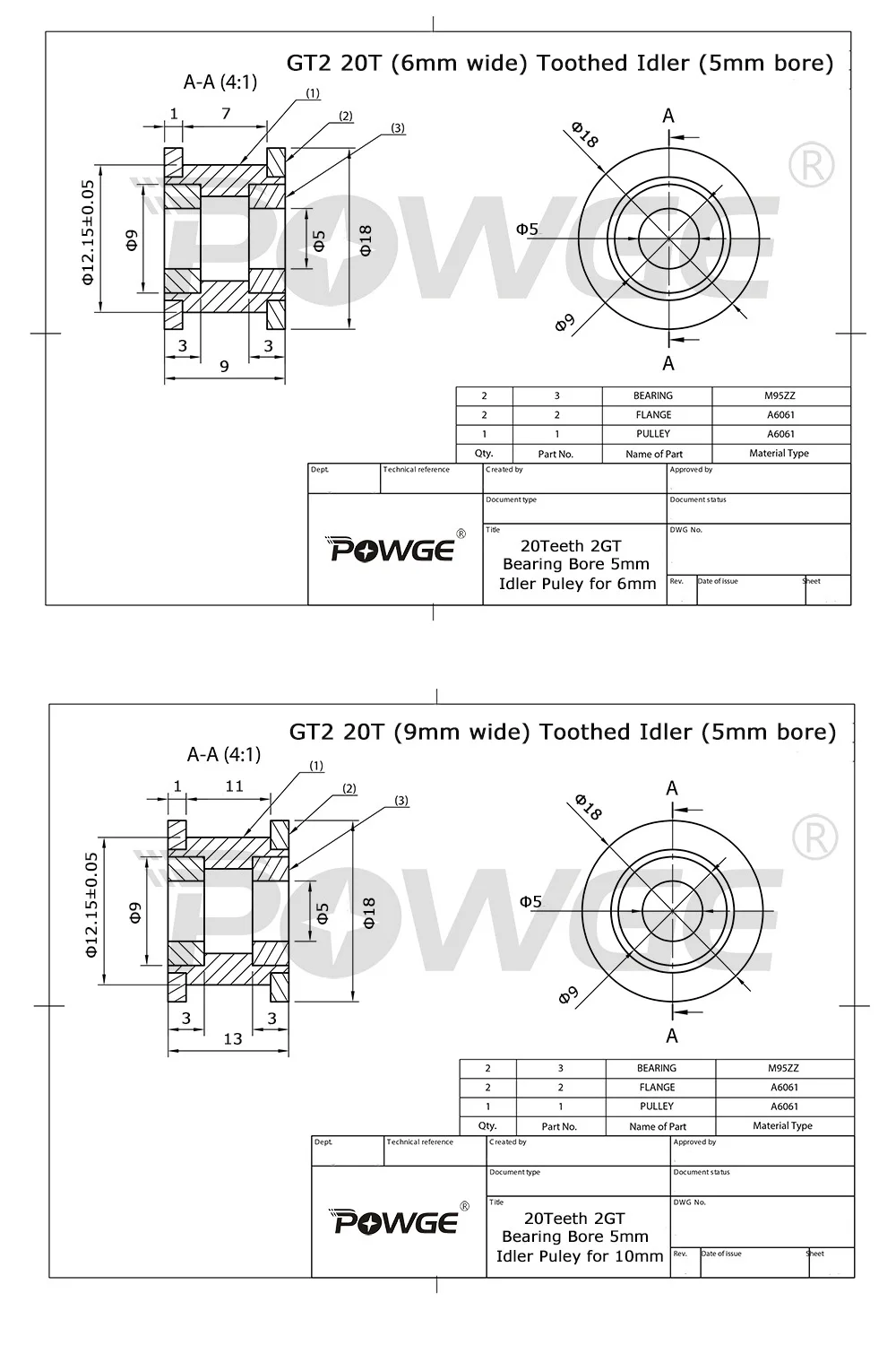 Диаметр подшипника: 5 ммФланец: двойнойМатериал: алюминиевый сплавПодходит для ширины ремня: 6 мм