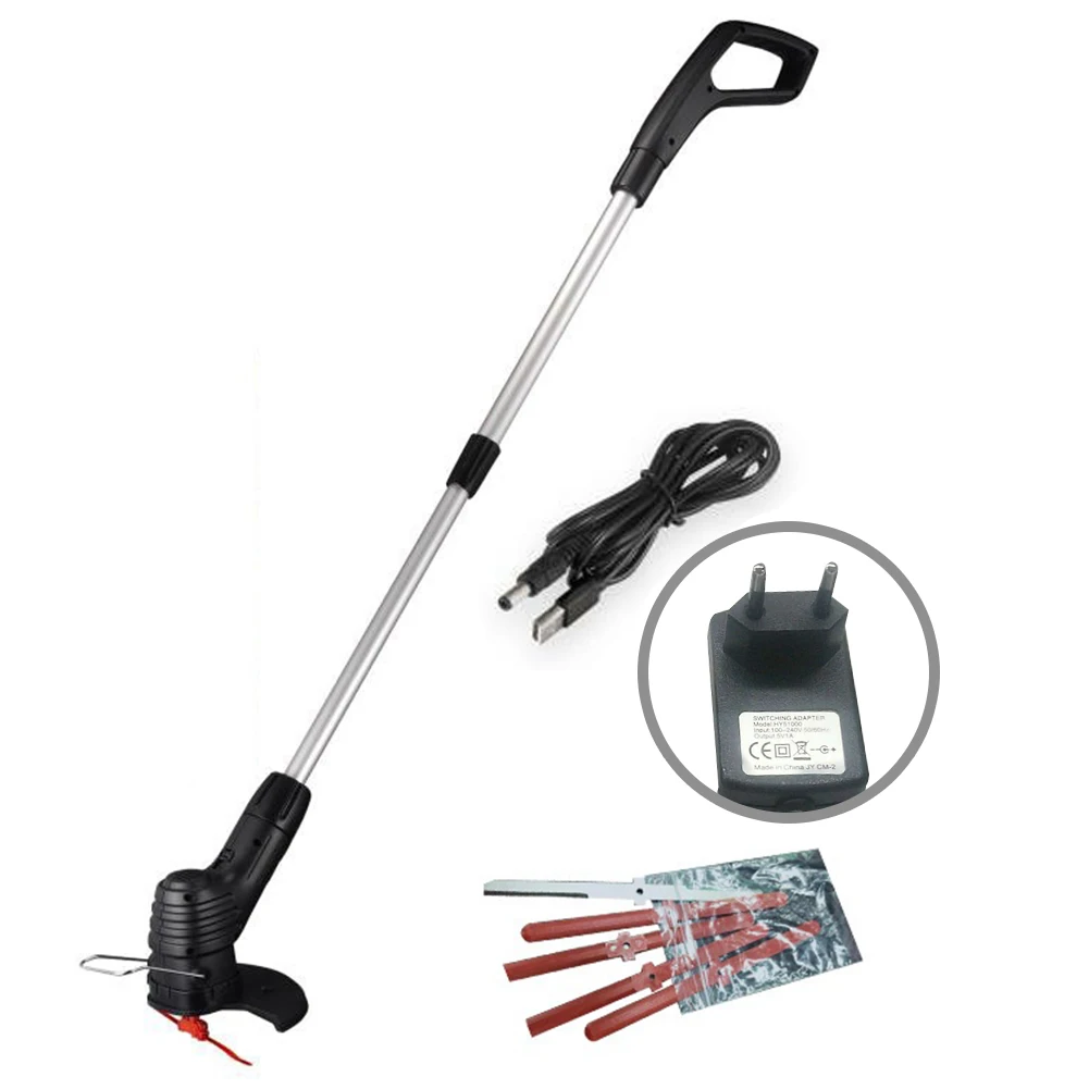 Многофункциональный перезаряжаемый электрический триммер с лезвиями, беспроводной домашний садовый инструмент, ножницы для прополки, обрезка газонокосилки, триммер для изгороди для травыОсобенность:Электрическая прополка литиевой батареи: Зарядка литиевой батареи, эффективное время автономной работы. Встроенный аккумулятор 2000 мАч, может работать непрерывно 3-4 часа, попрощайтесь с запутанностью проводов.Портативный Телескопический Шест: может соответствовать требованиям разной высоты (шест может быть телескопическим на 1-30 см), нет необходимости согнуть, чтобы Косить газон, легко закрепить высокий забор!Быстро режет траву, не повреждая газон: при садоводстве и стрижке газона нейлоновая скашивающая веревка может защитить стволы деревьев и цветы от вреда при стрижке травы. Сорняки вокруг цветов на стволе легко очищаются!С защитным чехлом: эффективно предотвращает разбрызгивание сорняков при прополке.Широкий спектр применения: подходит для обрезки садов, пасторальной травы, парков, дач, небольших кустарников и т. д.Спецификация:Название продукта: электрическая Беспроводная газонокосилка на литиевом аккумулятореМатериал: алюминиевая трубка/АБС-пластикВремя зарядки: 30-2 часаЛитиевая батарея: батарея 18650Напряжение: 3,7 в/2000 мАчСкорость холостого хода: 4,5 в оборотов/1 минута оборотов/13000 оборотовВремя без нагрузки: 3-4 часаМощность: 3 ВтТок: 700 мАУдлинение алюминиевой трубки: 1,05 метраБез удлинения: 75 смПримечание:В связи с различиями мониторов и эффектами освещения реальный цвет товара может немного отличаться от цвета на фотографиях. Спасибо!Возможны отклонения в 1-2 см из-за измерений вручную. Упаковка:1 х Электрическая Газонокосилка4 пластиковых лезвия1 х металлическое пластиковое лезвие1 штекер (США/ЕС/Великобритания/Австралия на выбор)1 х Руководство