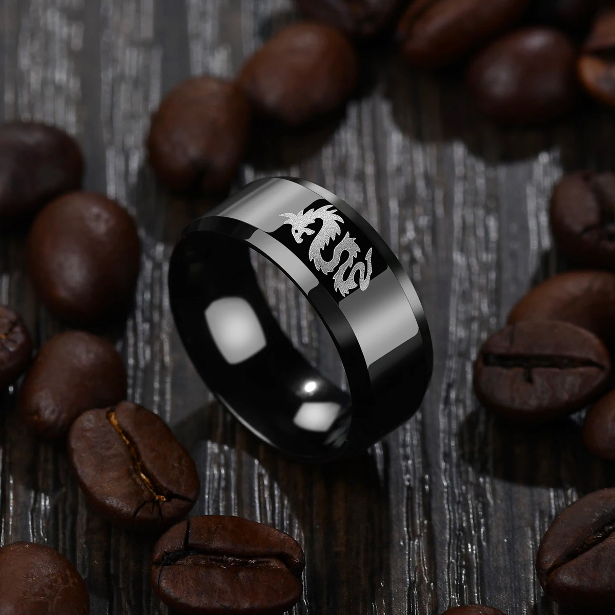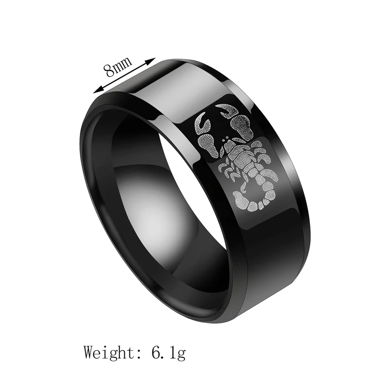 Shape\patternOne Piece 8mm Black Scorpion Lion Ring