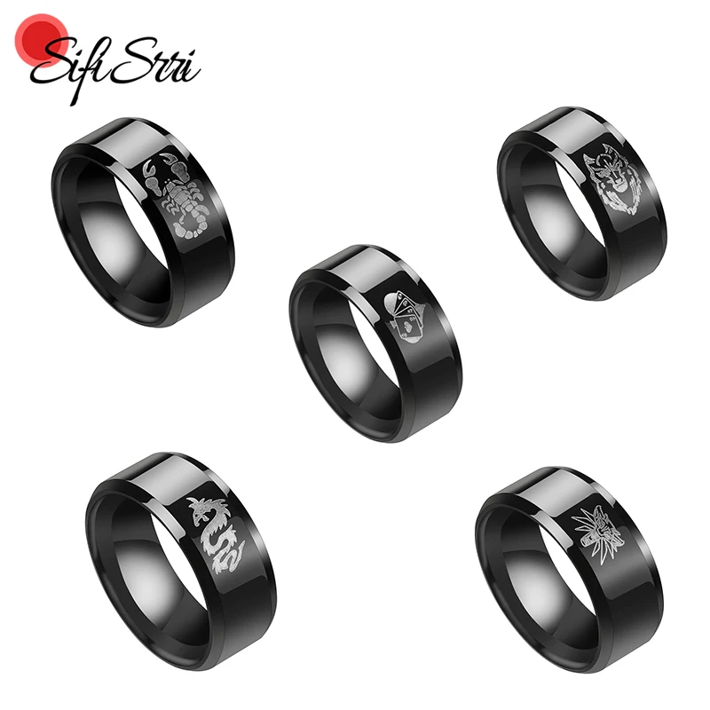 Sifisrri цельный 8 мм Черный скорпион Лев кольцо для мужчин женщин мужчин Нержавеющая сталь ремешок мужской Соломон подарок на день рождения Anillos Anneaux