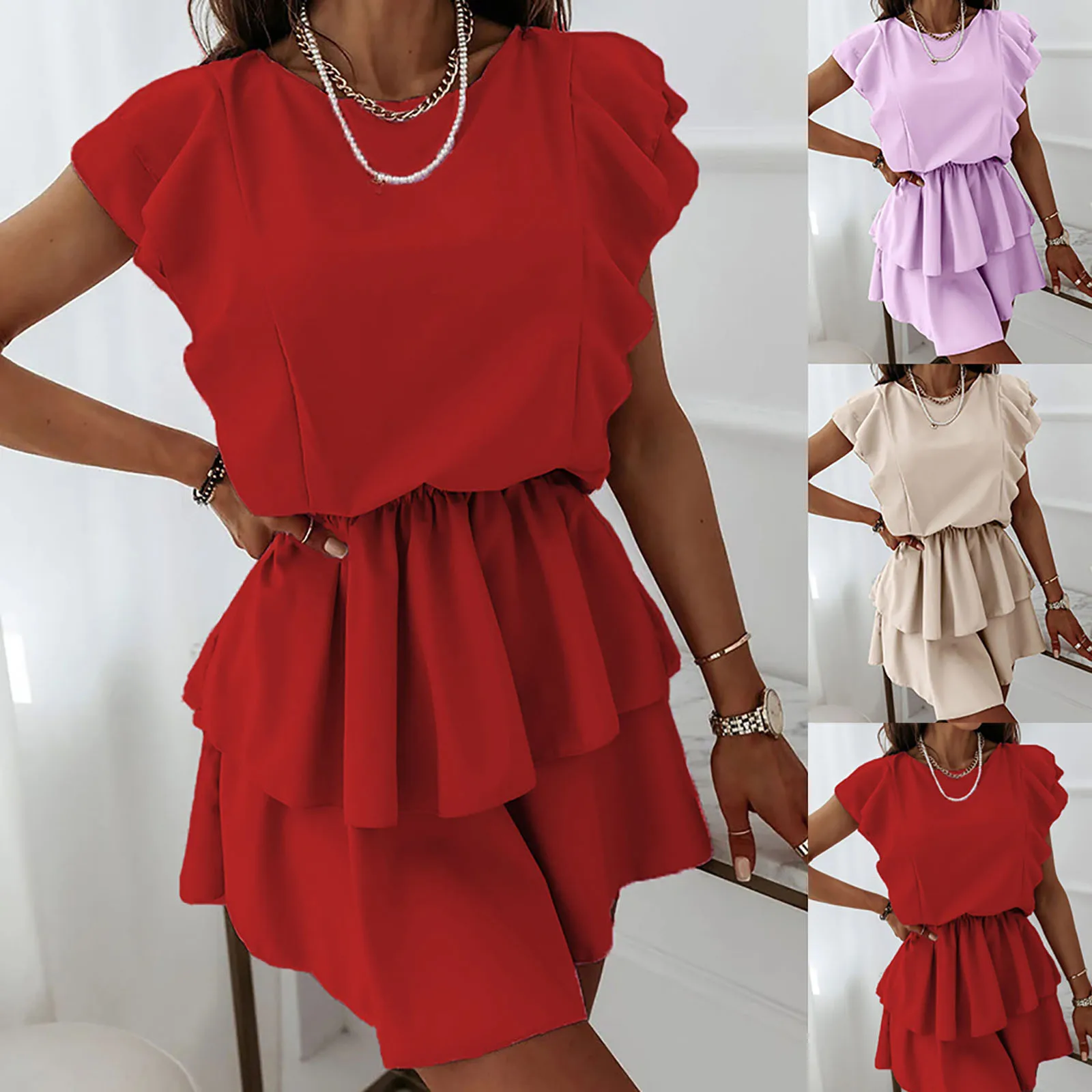 Женское летнее однотонное платье, женское модное Двухслойное свободное платье большого размера с оборками, женские мини-платья без рукавов большого размера