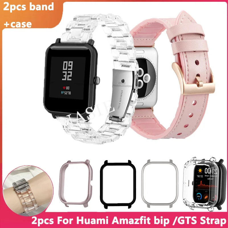 Ремешок для часов Correa Amazfit Bip, кожаный ремешок + чехол для Huami Amazfit Bip GTS, прозрачный защитный ремешок для умных часов, 2 шт.
