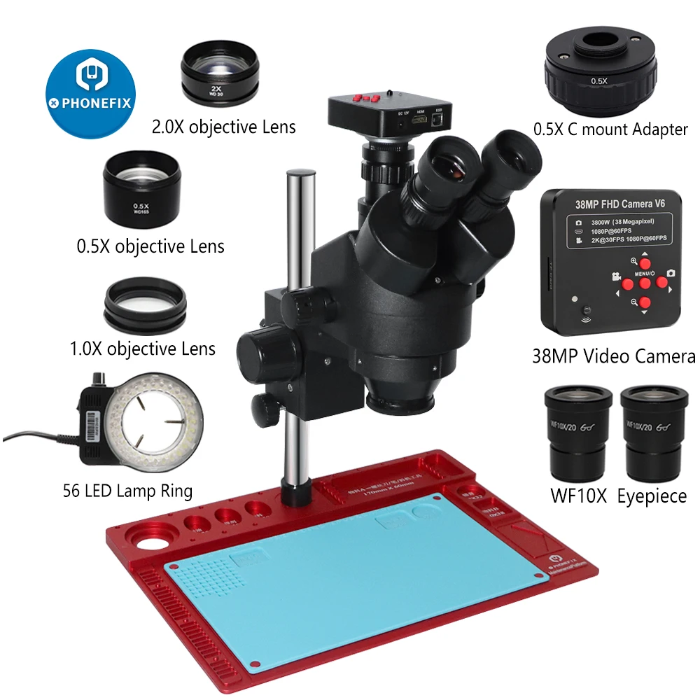 Комплект микроскопа с тринокулярным увеличением 3,5x-90X, окуляр WF10X, объектив объектива CTV-адаптера 38 МП, HDMI, USB, видеокамера, микроскоп