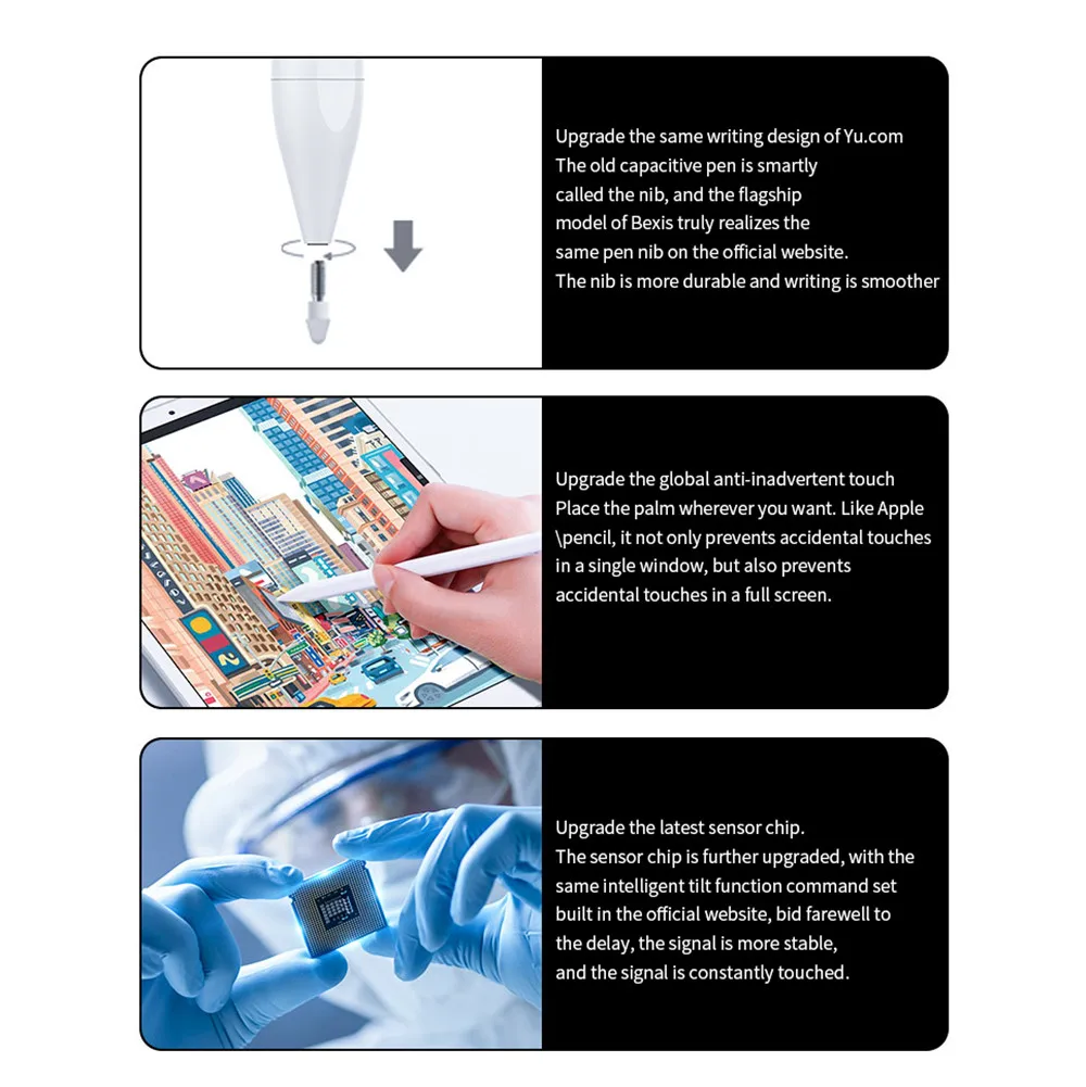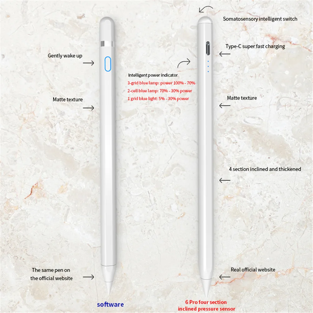 Стилус Kebidumei 5 Gen/6 Gen Pro, антиошибочный сенсорный конденсатор, специальный стилус конденсаторная ручка, используемый для письма и рисования для iPad Спецификация:Материал: алюминиевый сплав с рояльной краскойМатериал наконечника: ПОМСпособ подключения: сенсорный выключатель 5 поколений/Профессиональный сенсорный выключатель 6 поколенийАккумулятор: литий-полимерный аккумулятор 140 мАчВремя зарядки: 60-80 минутВремя ожидания: 30 днейЗарядный кабель: зарядный кабель USB-Type c (входит в комплект)Характеристики зарядки: 5 В/1 АУмное Энергосбережение: 5 поколений 5 минут/6 поколений Pro 5-30 минут автоматическое отключениеВремя использования: работа непрерывно до 10-12 часов.Особенность 1: карандаш для iPadОсобенность 2: настольный стилетОсобенность 3: для iPad penОсобенность 4: Стилус для мобильный телефонОсобенность 5: для apple pencilОсобенность 6: Поддержка предотвращения ложных прикосновенийОсобенность 7: стилус для iPadСветильник вое напоминание:Выключатель не имеет цвета индикатора, а переключатель вкл белый. Когда горит красный светильник, идет обычная зарядка, а когда зарядка насыщена, зеленый.Совместимость и применимость:Поддерживает только IPAD выше 2018Магнитная АдсорбцияКрепится к боковой поверхности iPad Pro 11 12,9 2018 и 2020, больше не катится и не теряется, более портативный и простой в организации.Повышенная точностьИнновационный дизайн наконечника позволяет легко перевернуть страницу, выбрать фильм, нарисовать картинку и сохранить Надоедливые отпечатки пальцев с глянцевого экранаБыстрый стартСоединение Bluetooth не требуется, просто распакуйте коробку, включите и начните создавать. Используйте любимые приложения совершенно по-новому.Посылка тация:1 * емкостная ручка1 * зарядный кабель USB-Type-c1 * ручка1 * блистер1 * Руководство