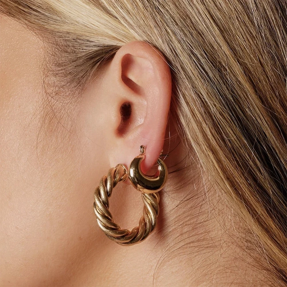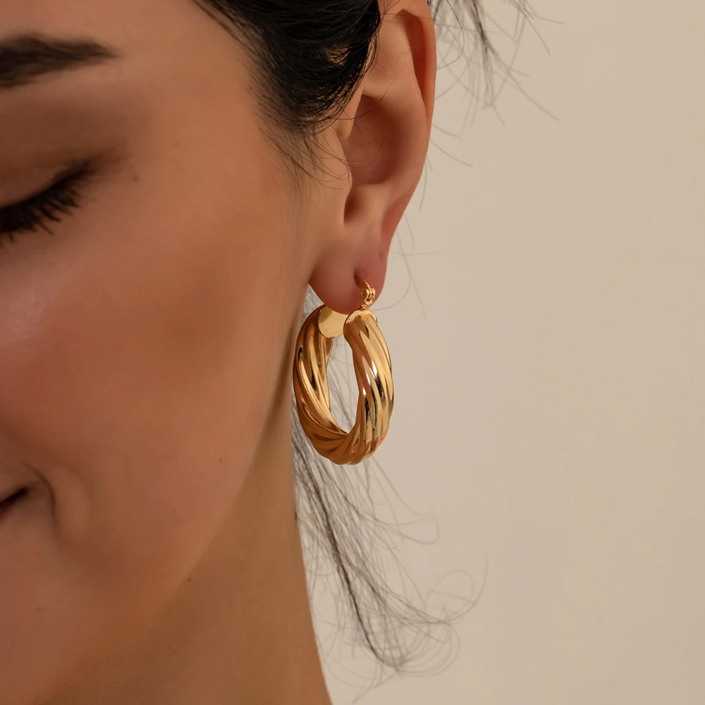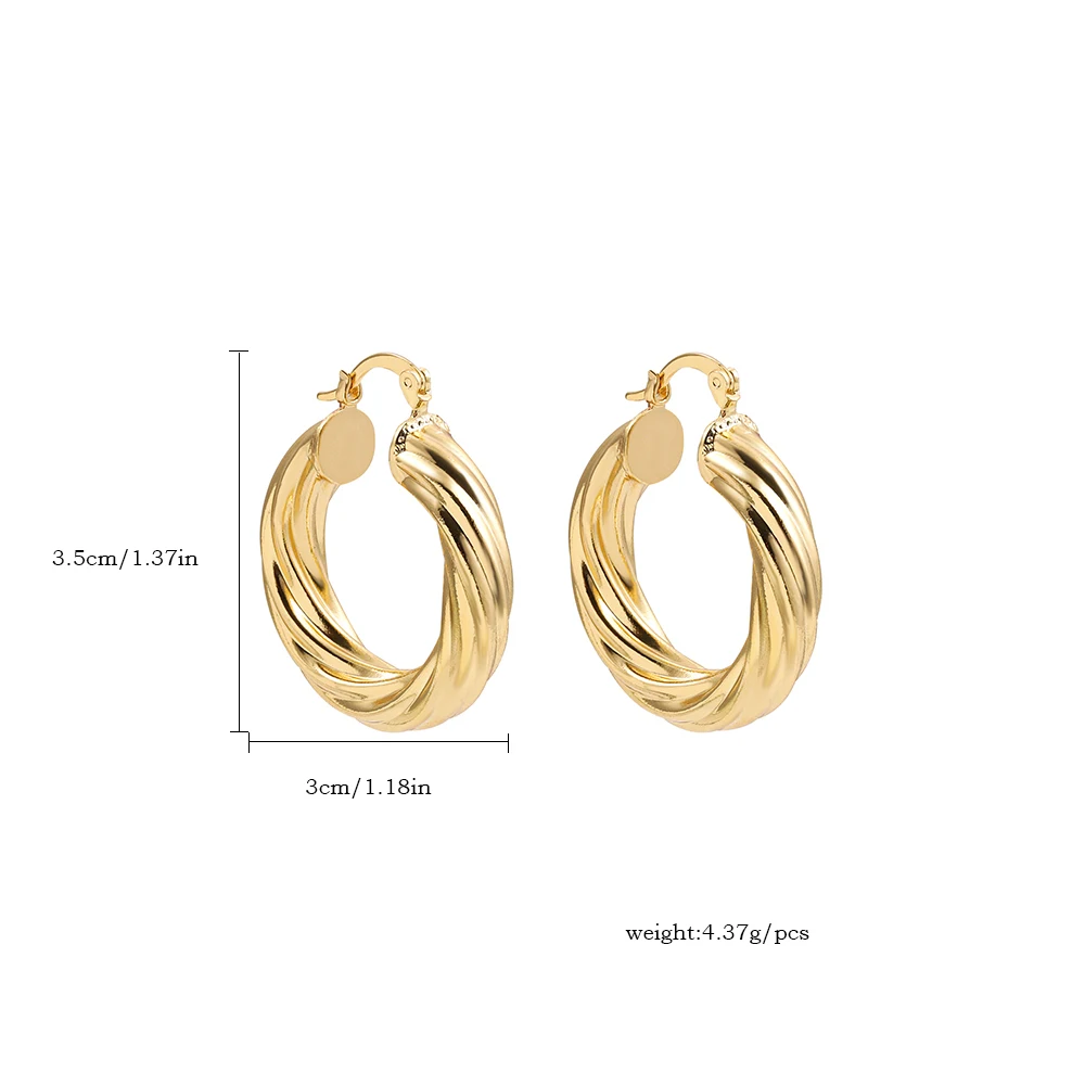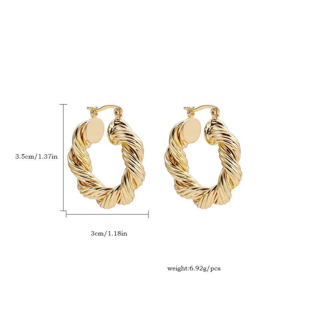 Модные витые серьги-кольца для женщин, большие золотистые металлические серьги в стиле ретро, геометрические круглые серьги, простые украшения, аксессуары