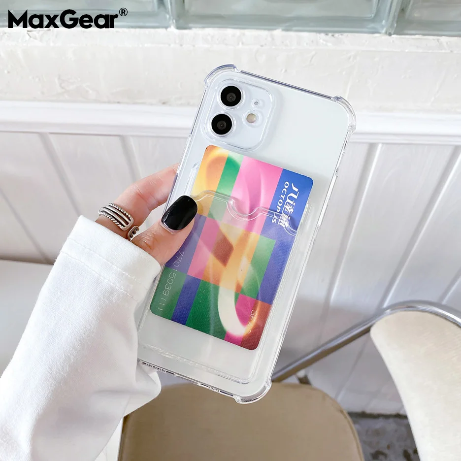 Прозрачный противоударный чехол с держателем для карт для iPhone 13...