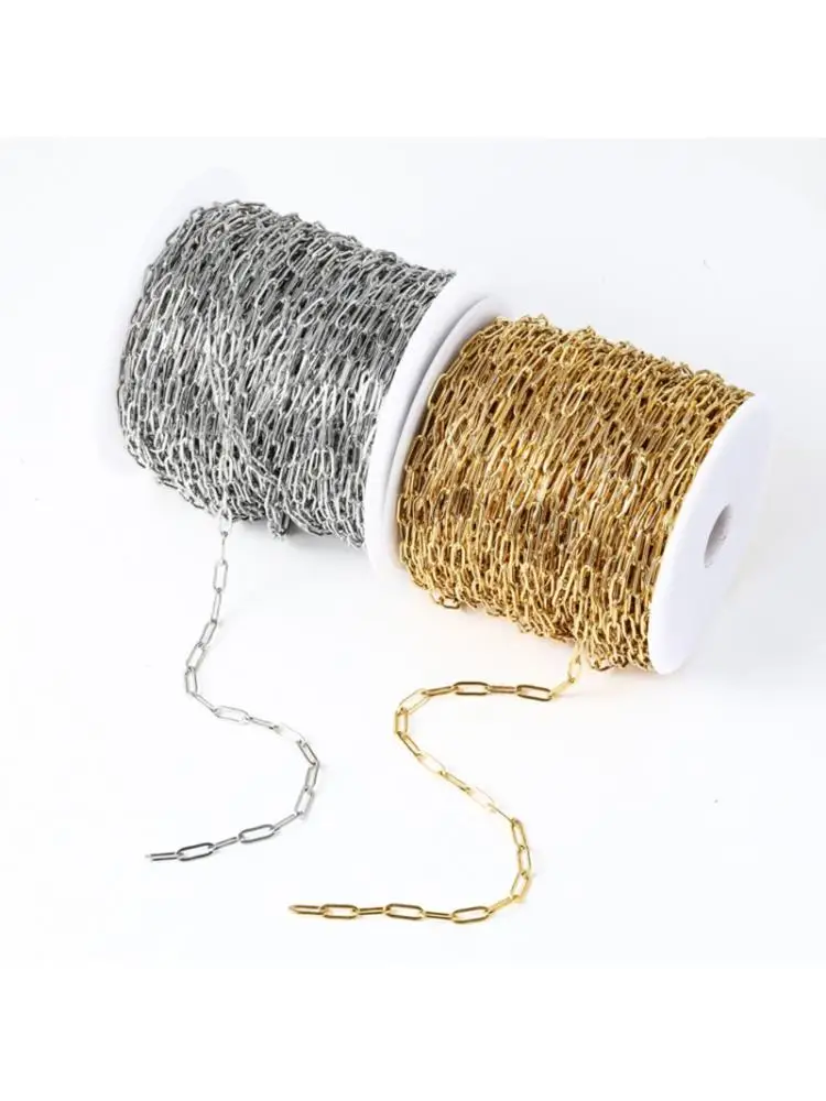 Цвет: Золотой/СеребряныйМатериал: нержавеющая стальШирина: 4 мм/0,16 дюймаДлина цепи: 5 м/196,85 дюйма