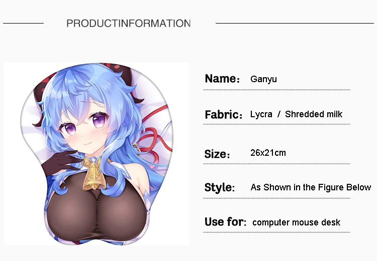 3d-коврик для мыши Ganyu в стиле аниме, мультяшный рисунок Genshin, силиконовый коврик для мыши для груди, большого размера, руки, запястья, коврик для мыши в стиле аниме, подарки для взрослых