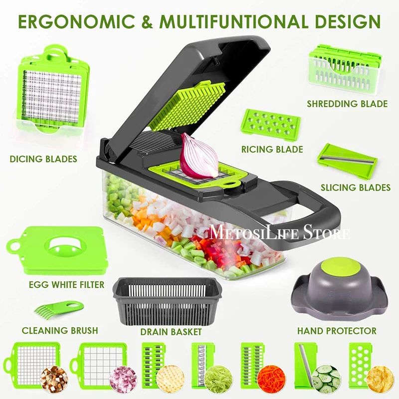 Измельчитель для овощей, репчатый лук чоппер, 12 в 1 овощерезка, Pro слайсер для нарезки, резак, ручной слайсер, Мандолины измельчитель с конт
