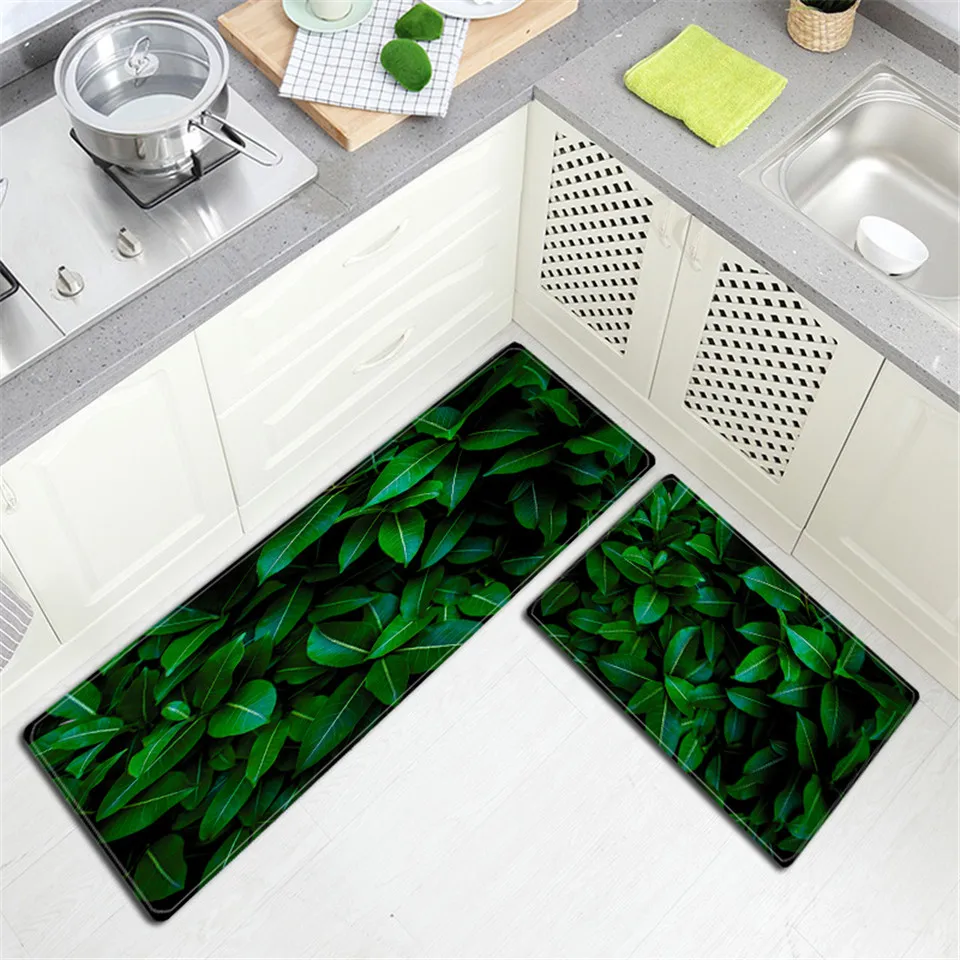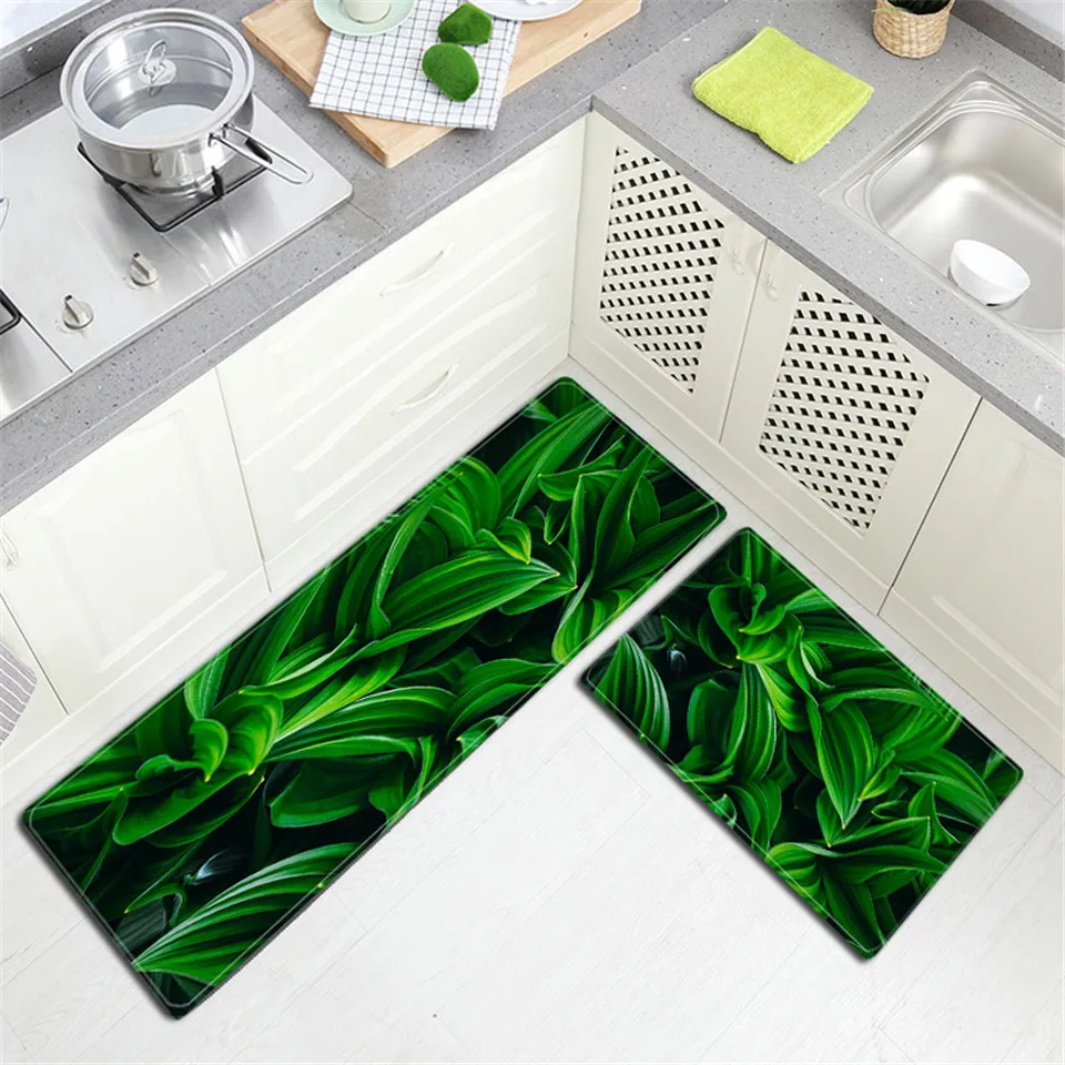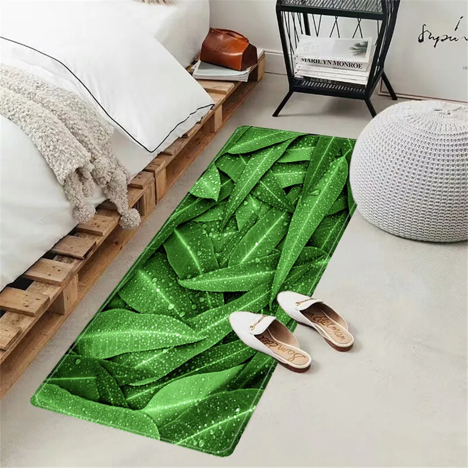 Трехмерный коврик с принтом зеленых листьев для кухни, напольный длинный ковер с эффектом памяти, ковер для ванной комнаты, противоскользящий прикроватный ковер для спальни