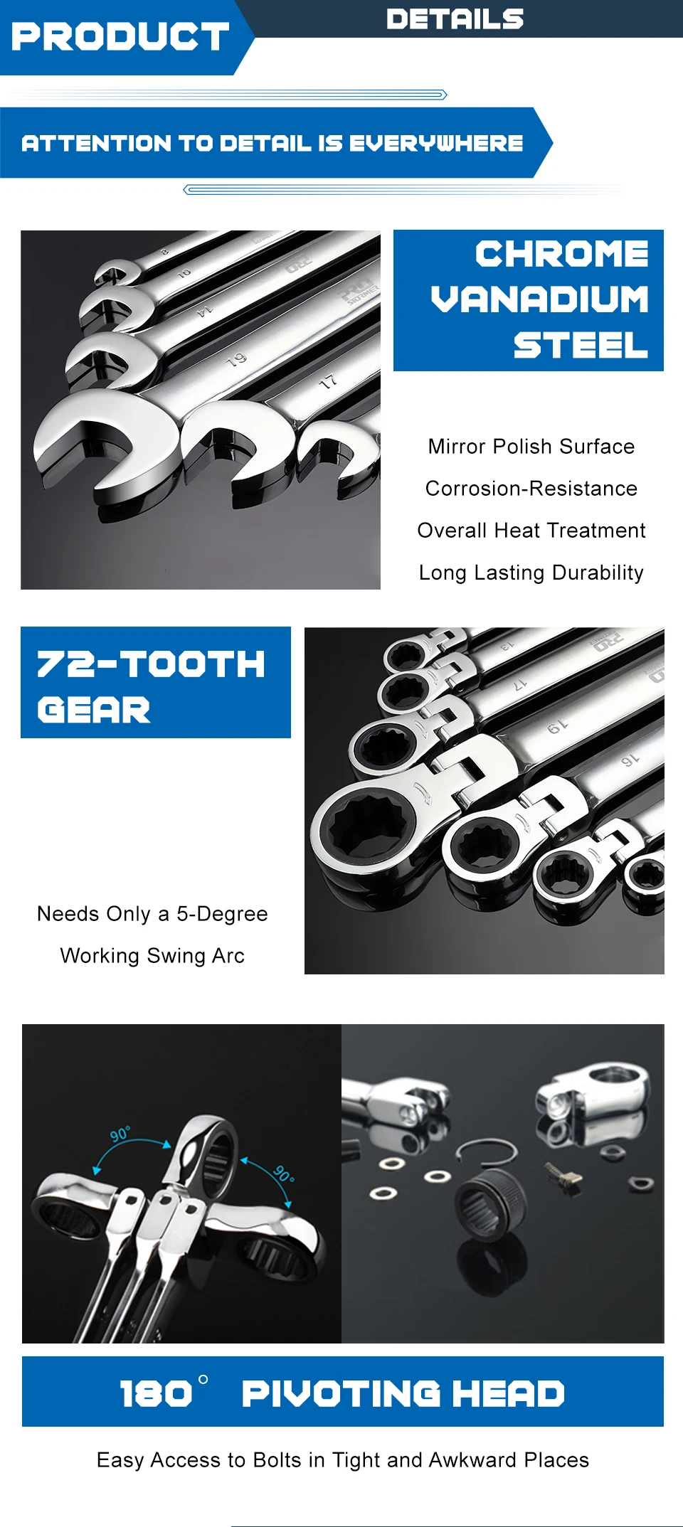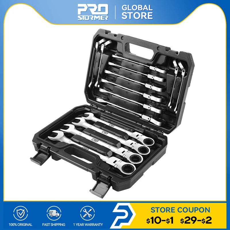 Набор гаечных ключей PROSTORMER, универсальный инструмент с храповым механизмом и гибкой головкой, 14 шт, 6-19 мм