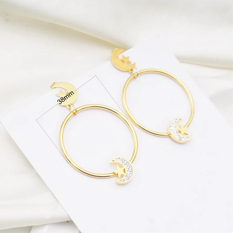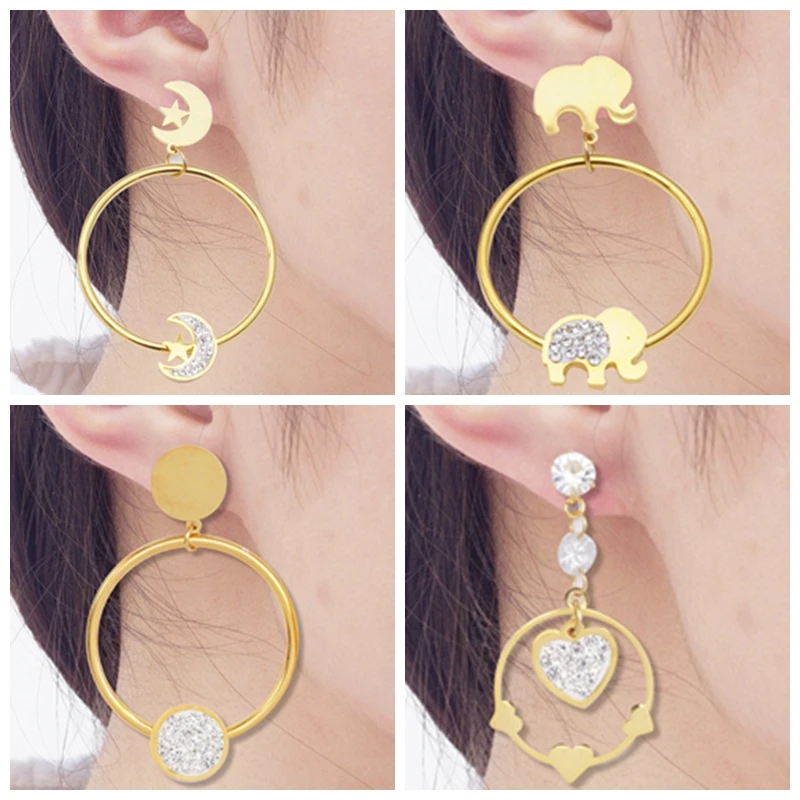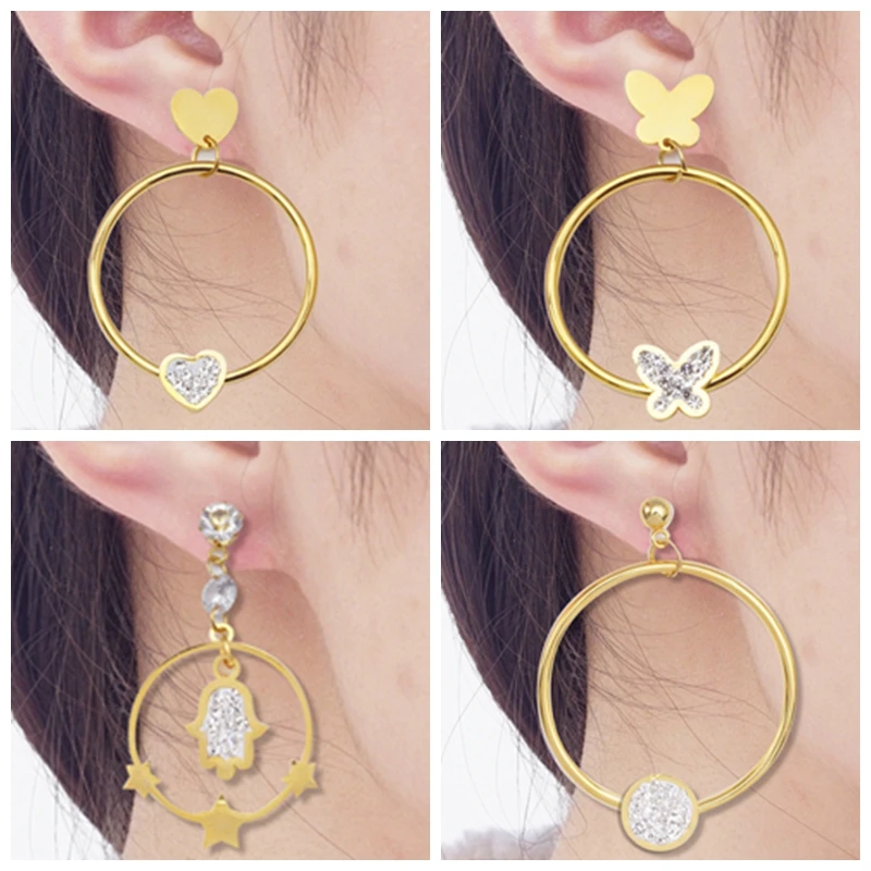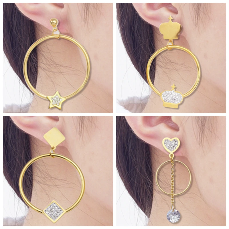 10 шт.лот серьги из нержавеющей стали, оптовая продажа, золотые большие висячие серьги для женщин и девушек, круглые серьги в стиле панк-рок, длинные висячие серьги