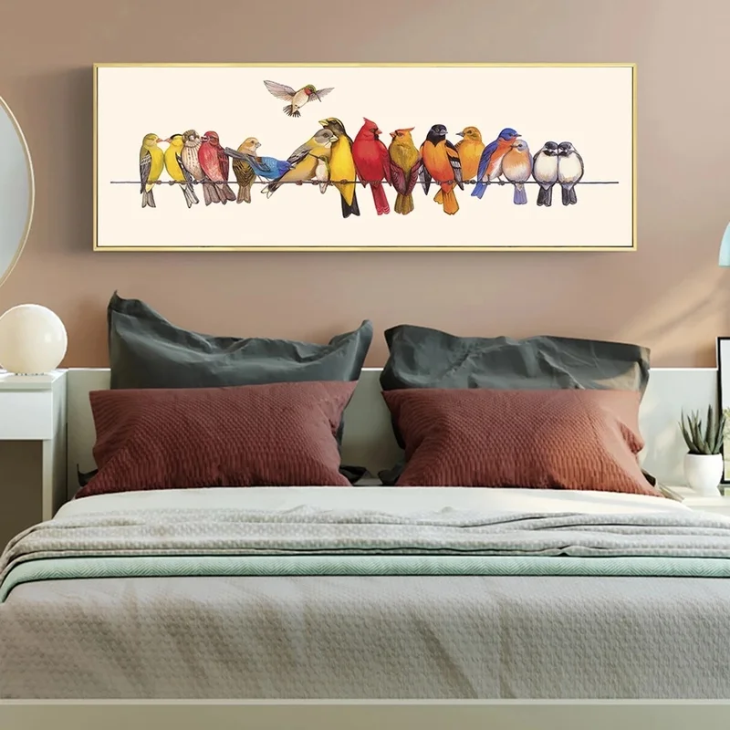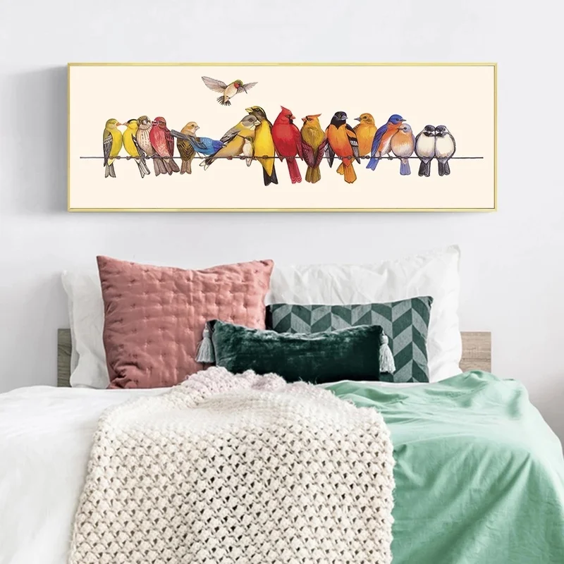 Картина на холсте, с изображением птиц на проволоке, в скандинавском стиле, для украшения гостиной, изображение животного на стене