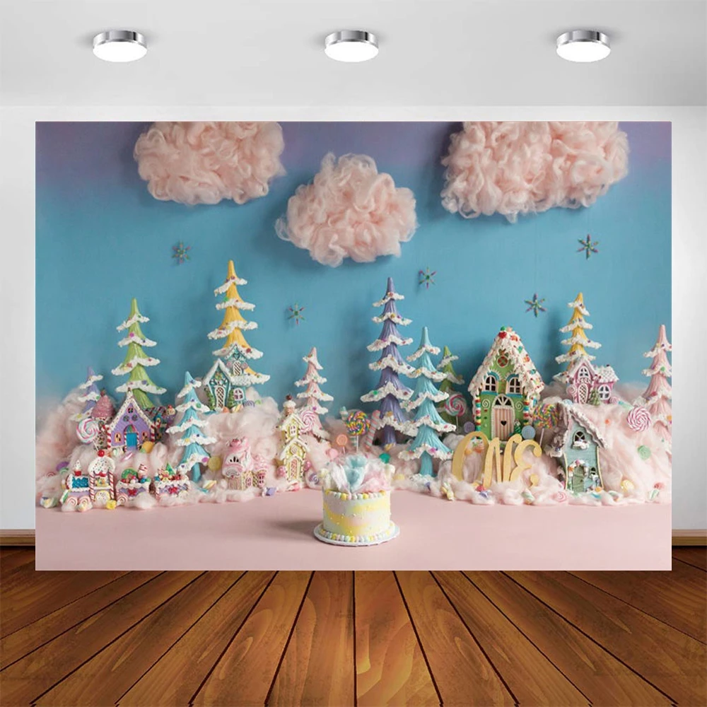 Рождественская елка торт облако интерьер детский наряд для дня рождения портретный фон винил для фотографий Фотофон фон для плакатов