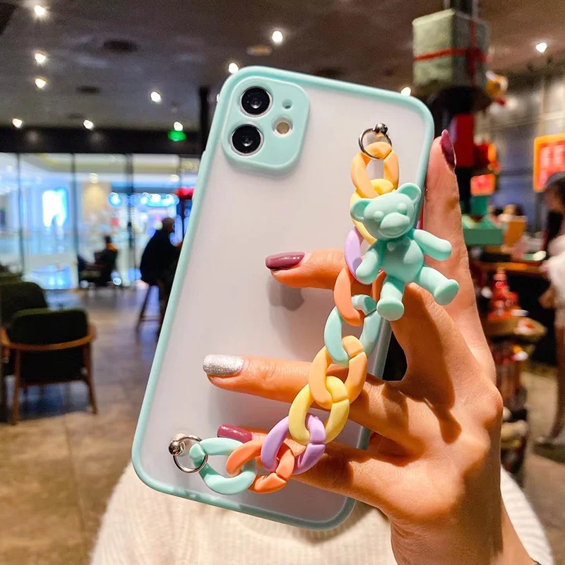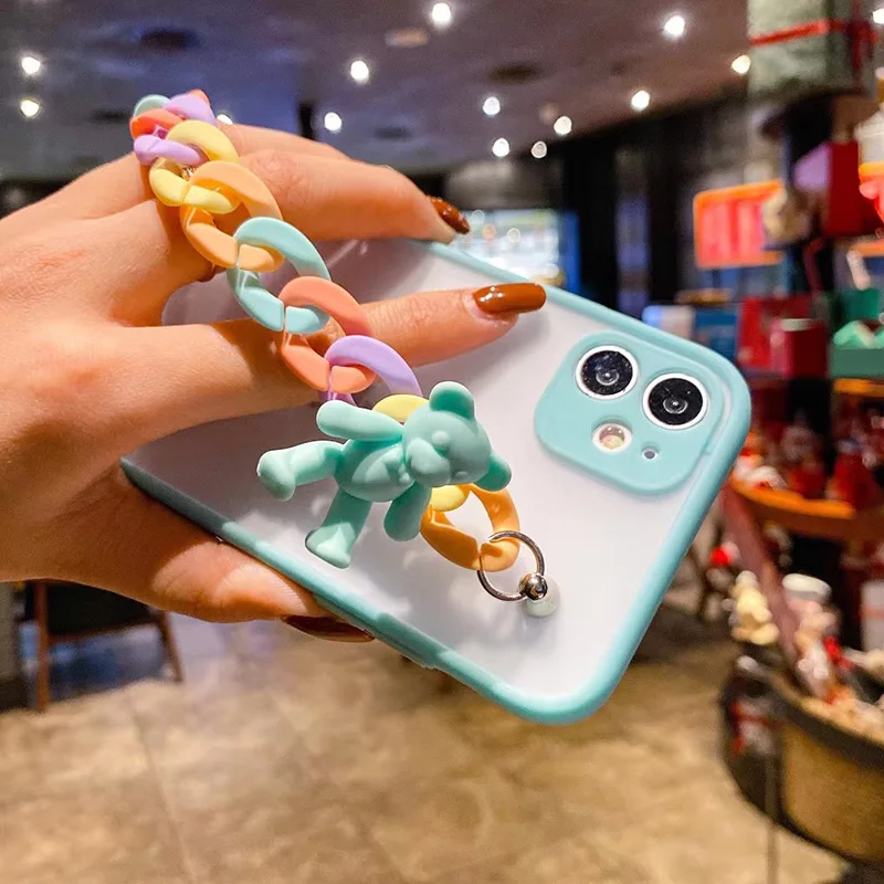 Защитный чехол-бампер для телефона с 3d-медведем и цепочкой на запя...