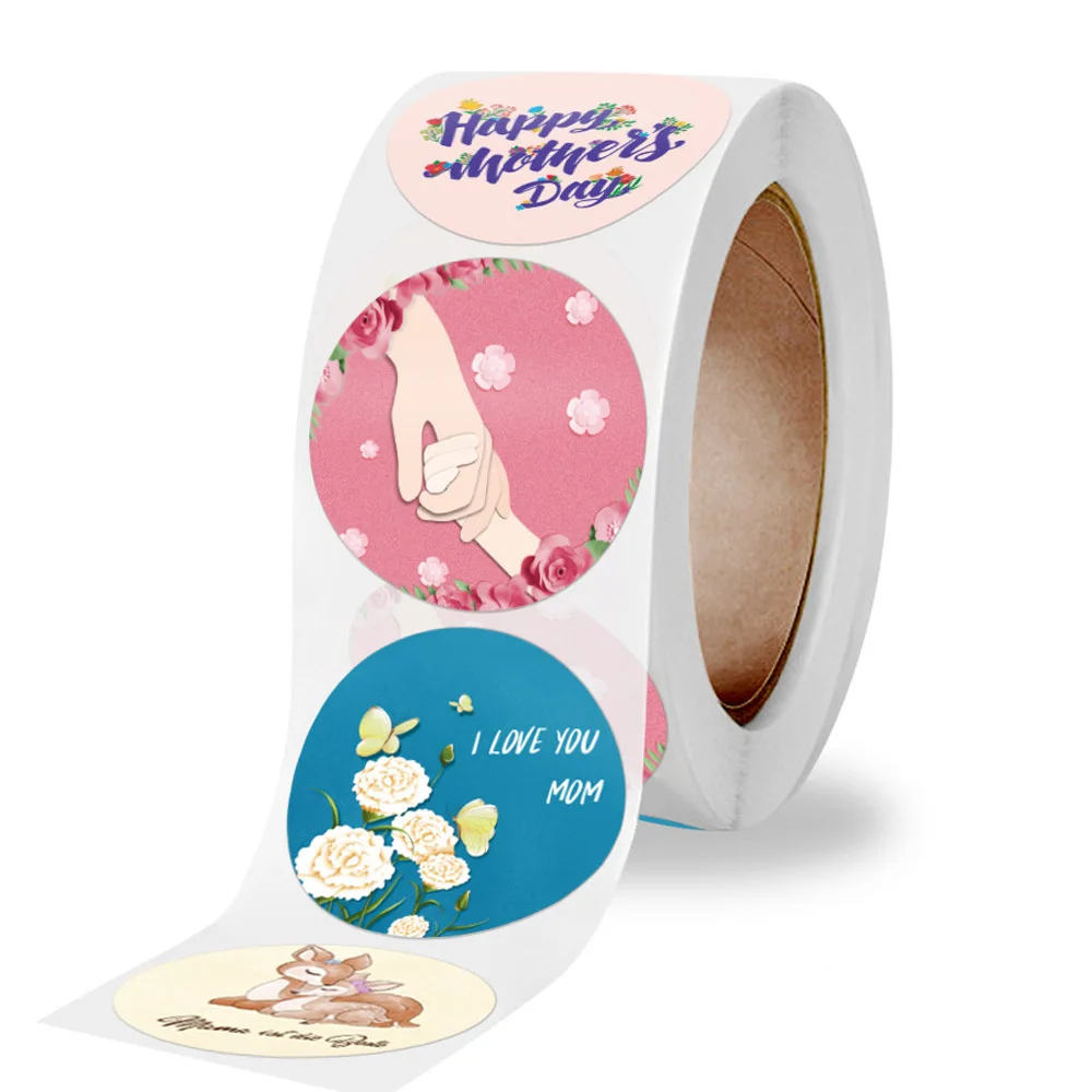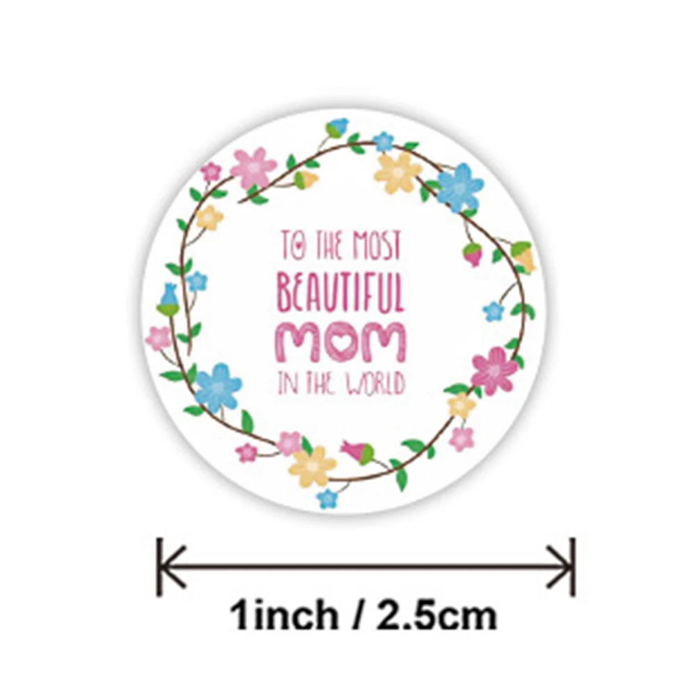 Наклейки для подарков на день матери, Круглые, крафтовые, 50-500 шт.