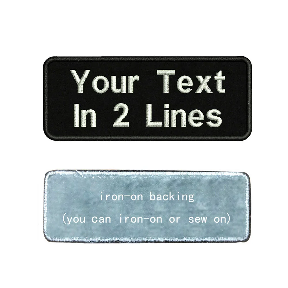 10x4 см, вышивка, 2 линии, индивидуальное название, значок в виде строчек, нашивки с помощью утюга или Velcros