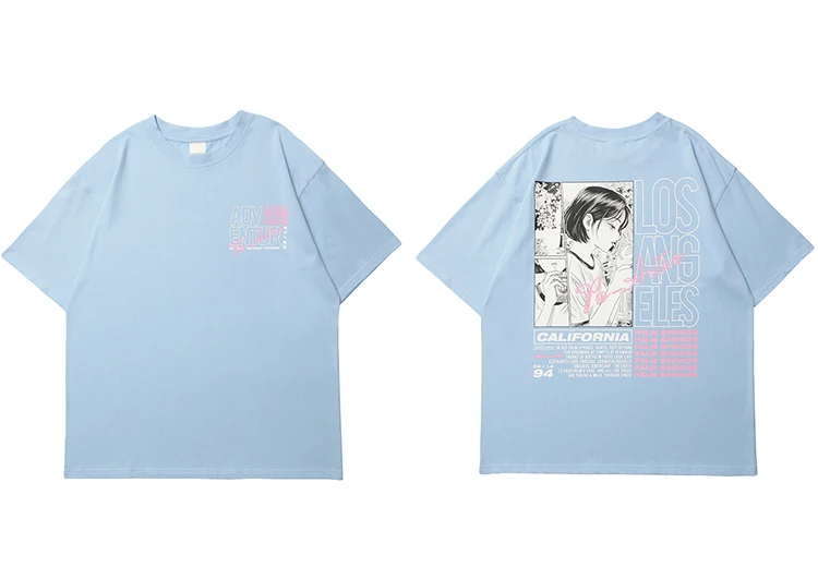 FashionAnime Girl Smoking Letter Print T shirt
