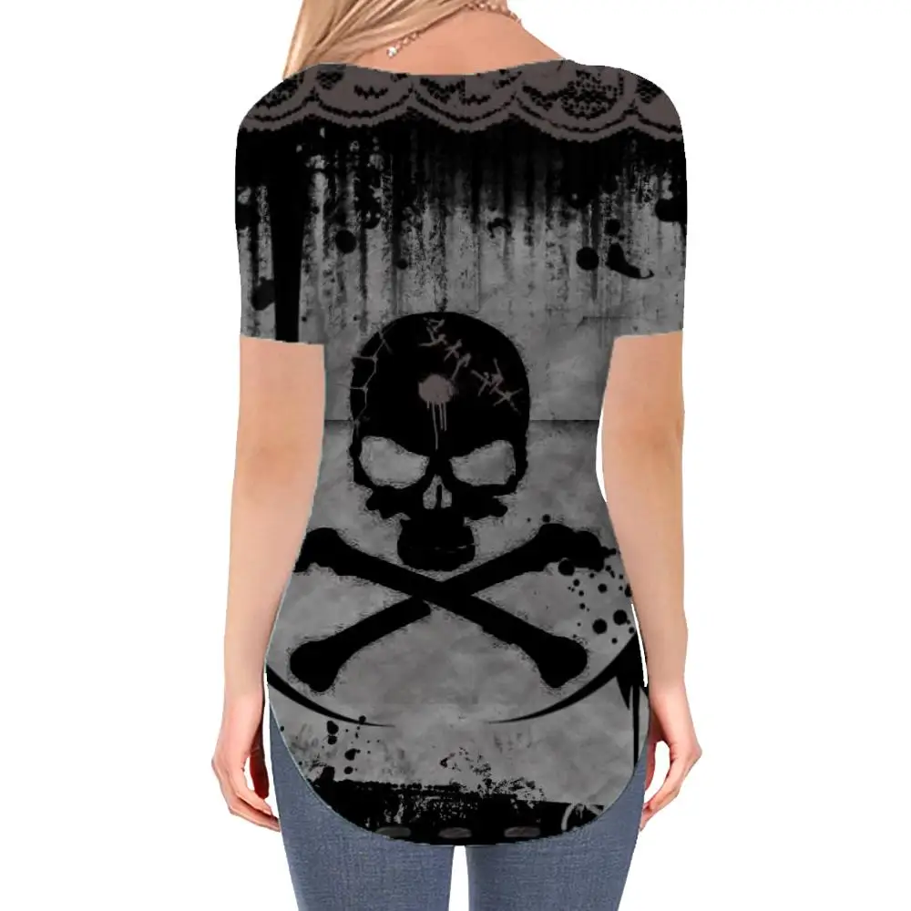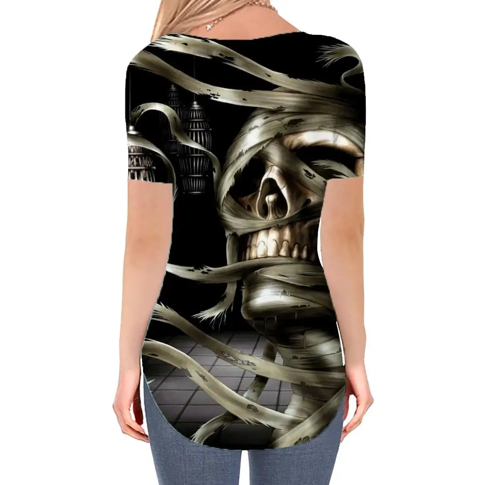 Женская футболка KYKU, забавная синяя футболка с принтом черепа, женская одежда в стиле панк-рок, крутая Новинка