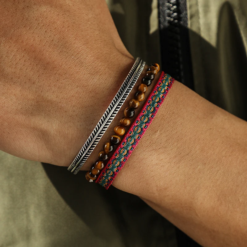 3 шт.комплект, мужской браслет из натурального Тигрового Глаза